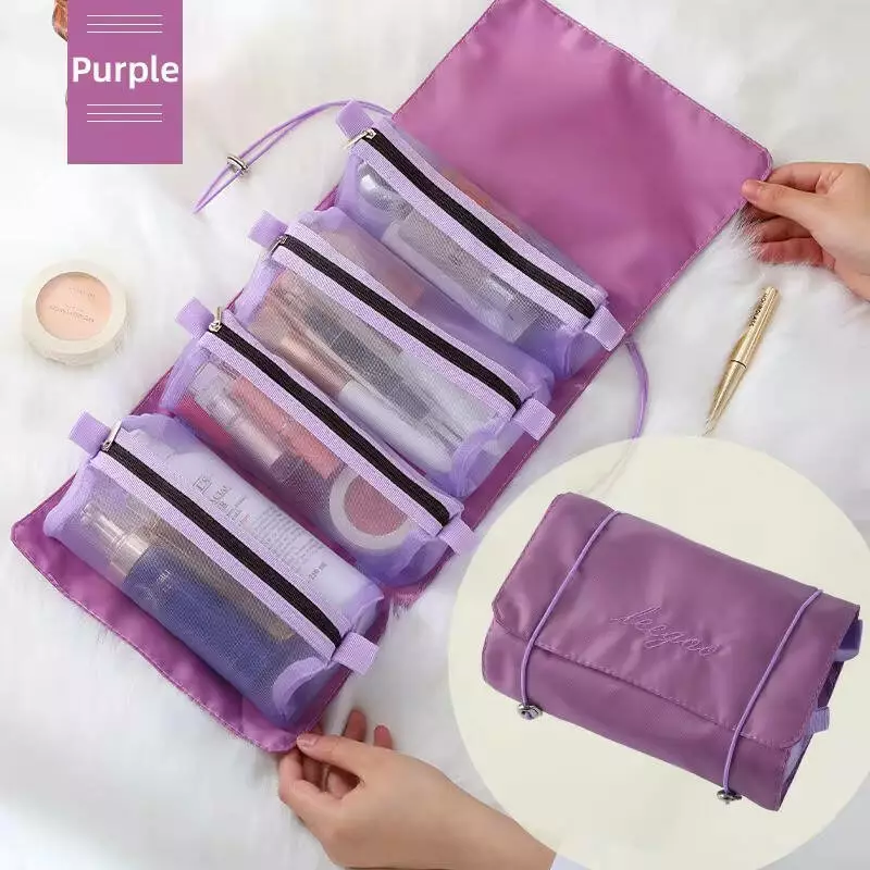 Косметичка для макіяжу портативна, 4 знімні відділення на липучках, фіолетовий