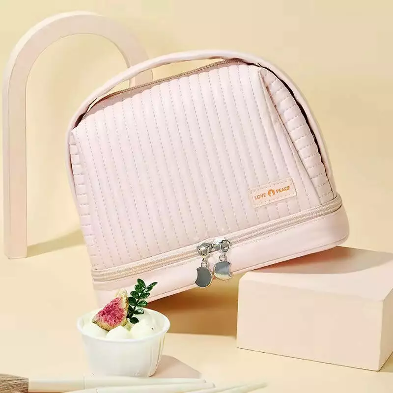 Косметичка для приладдя зі штучної шкіри для макіяжу, рожева