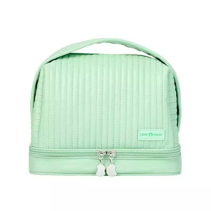 Косметичка для приладдя зі штучної шкіри для макіяжу, зелена