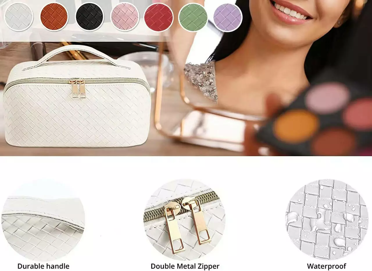 Косметичка виготовлена з високоякісної штучної шкіри, що забезпечує довговічність виробу та стійкість до пошкоджень. Міцна блискавка гарантує безпечне зберігання ваших косметичних засобів і аксесуарів, не дозволяючи їм випадати навіть у разі активного використання в подорожах або в повсякденному житті.