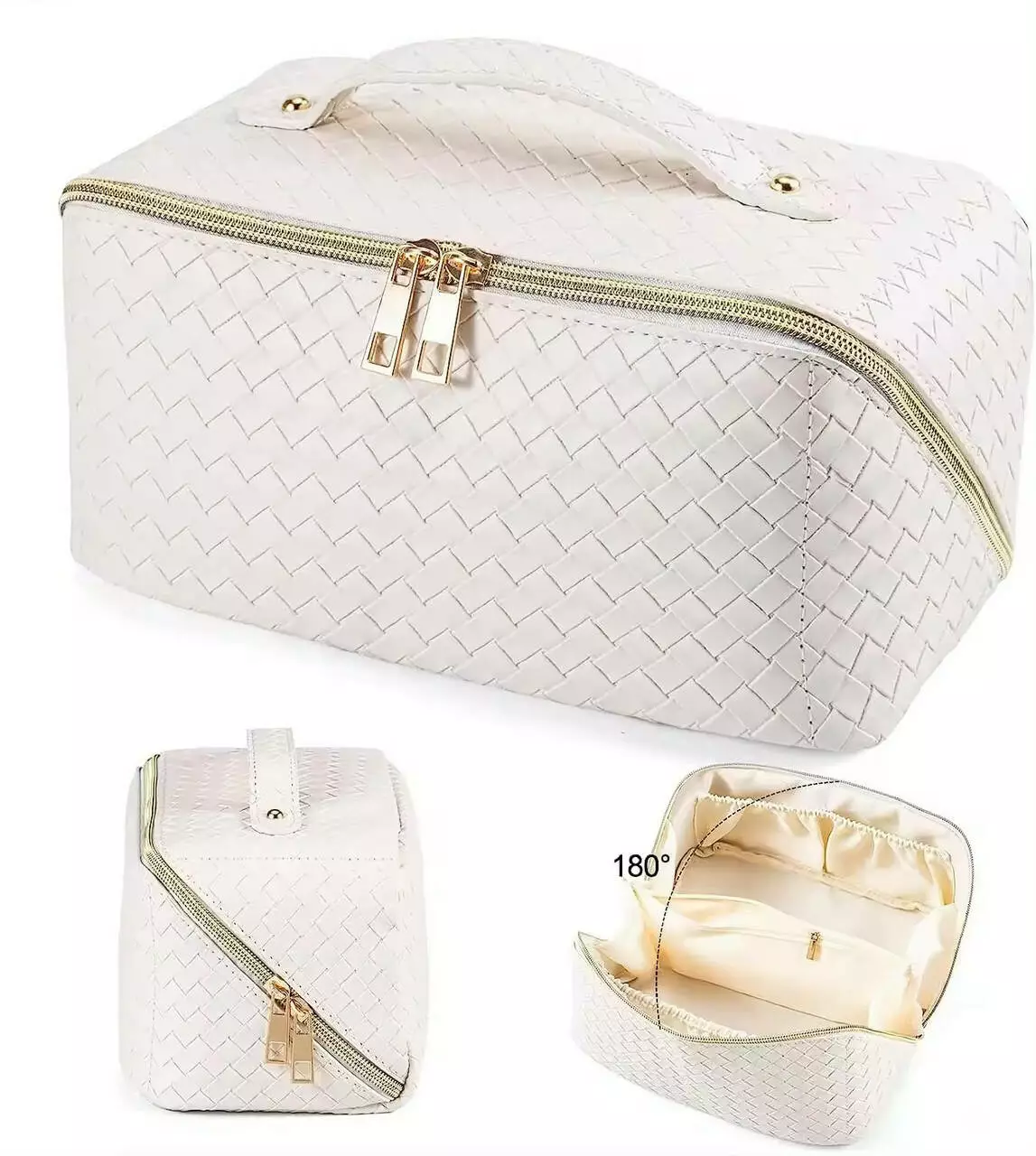 Чорне оздоблення та мінімалістичний дизайн роблять цю косметичку ідеальним вибором для тих, хто цінує елегантність і практичність. Місткий внутрішній простір дає змогу зручно розмістити всі необхідні дрібниці, включно з косметикою, аксесуарами для догляду за шкірою та іншими предметами особистої гігієни. Будьте готові до всіх своїх пригод з цією стильною і функціональною косметичкою зі штучної шкіри на блискавці!