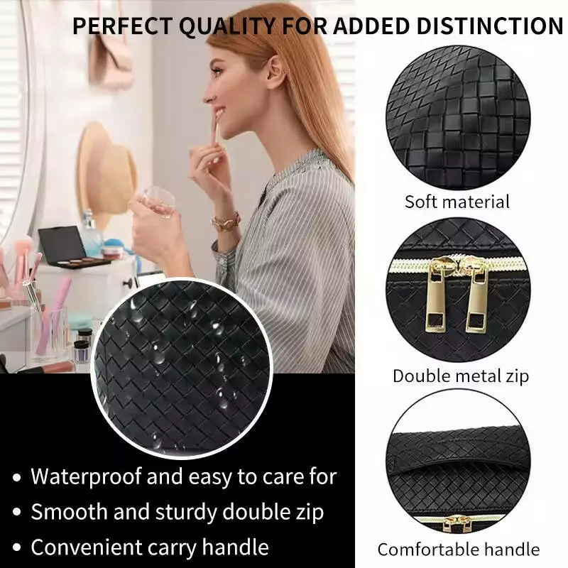 Косметичка виготовлена з високоякісної штучної шкіри, що забезпечує довговічність виробу та стійкість до пошкоджень. Міцна блискавка гарантує безпечне зберігання ваших косметичних засобів і аксесуарів, не дозволяючи їм випадати навіть у разі активного використання в подорожах або в повсякденному житті.