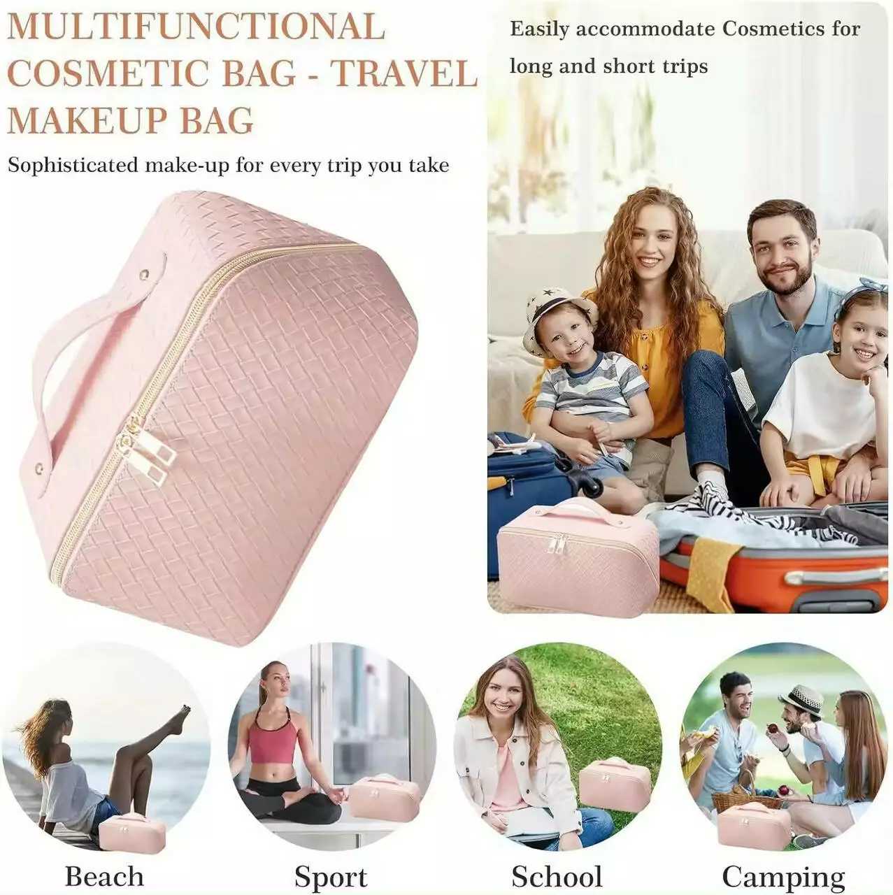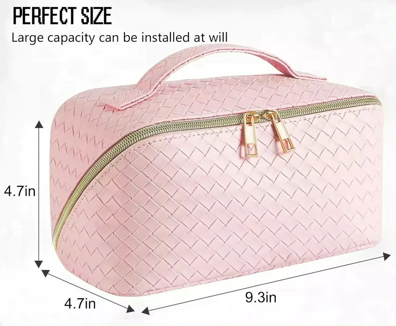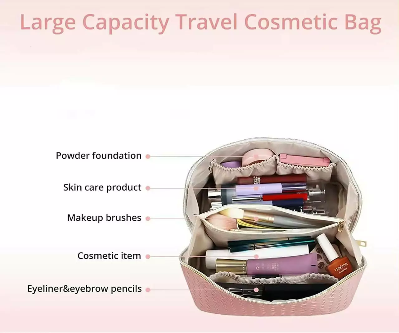 Косметичка на блискавці зі штучної шкіри, дорожня, рожева