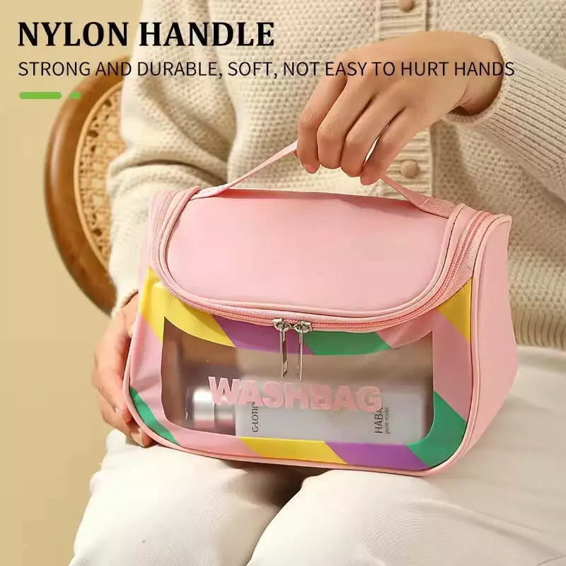 Ця стильна і практична косметичка втілює собою ідеальне поєднання функціональності та елегантного дизайну. Виготовлена з високоякісного прозорого матеріалу, вона дає змогу легко бачити вміст усередині, що робить пошук потрібного аксесуара максимально зручним. З водонепроникними характеристиками, ця косметичка ідеально підходить для використання у ванних кімнатах у дорожніх умовах.