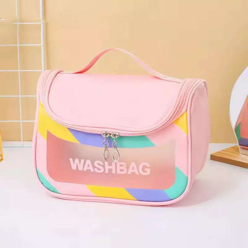 Косметичка жіноча прозора, для ванного приладдя, дорожня, водонепроникна, рожева