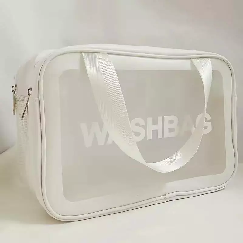 Косметичка зі штучної шкіри на 2 відділення у ванну для сухих і вологих речей, біла