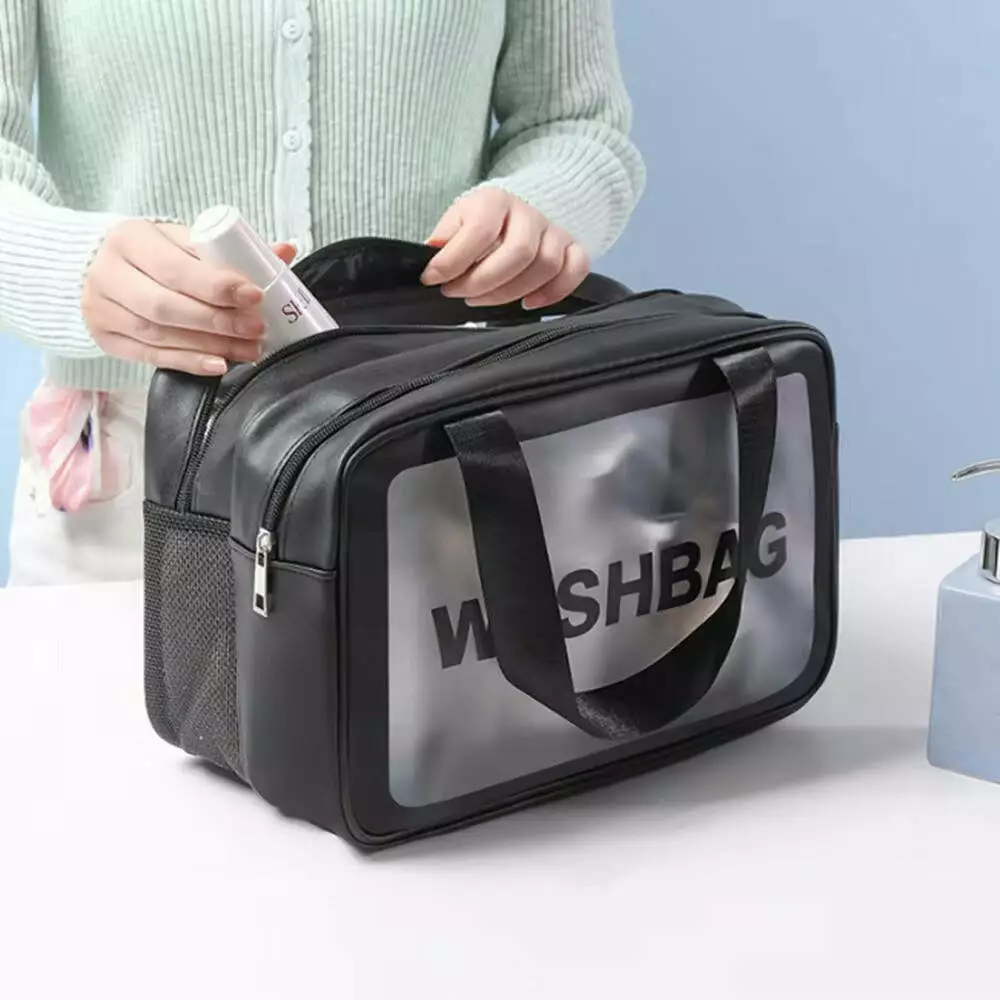 Ця стильна косметичка зі штучної шкіри ідеально підходить для організації вашого косметичного та гігієнічного приладдя у ванній кімнаті. З її двома відділеннями, розділеними спеціально для сухих і вологих речей, вона допомагає зручно зберігати і розділяти предмети залежно від їхнього типу використання. Штучна шкіра забезпечує міцність і легкість у догляді, що робить цю косметичку ідеальним вибором для вологого середовища у ванній.