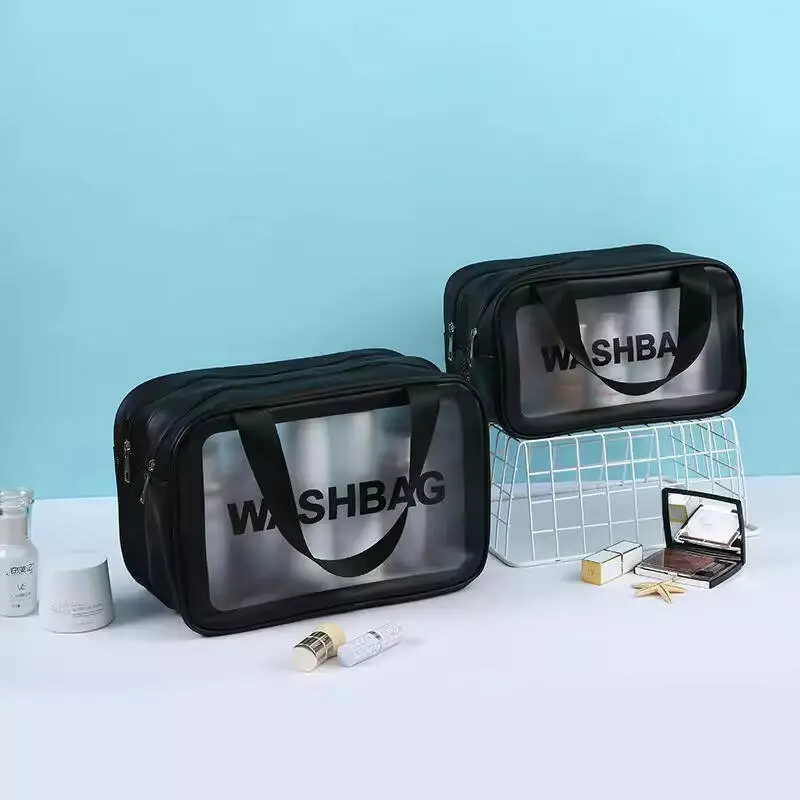 Косметичка зі штучної шкіри на 2 відділення у ванну для сухих і вологих речей, чорна