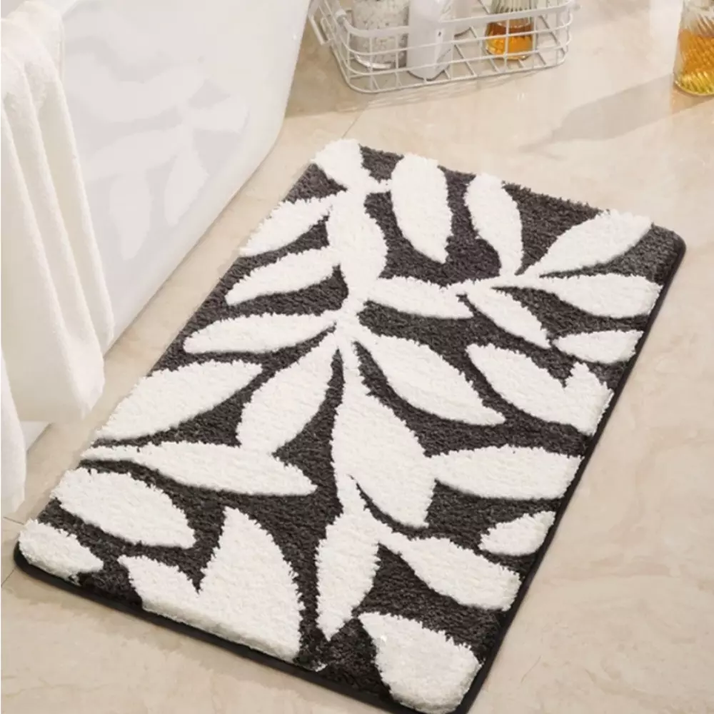 Коврик для ванной и душа коврик для ног в ванную комнату,микрофибра,атискользящий 40х60 см,серый с листьями