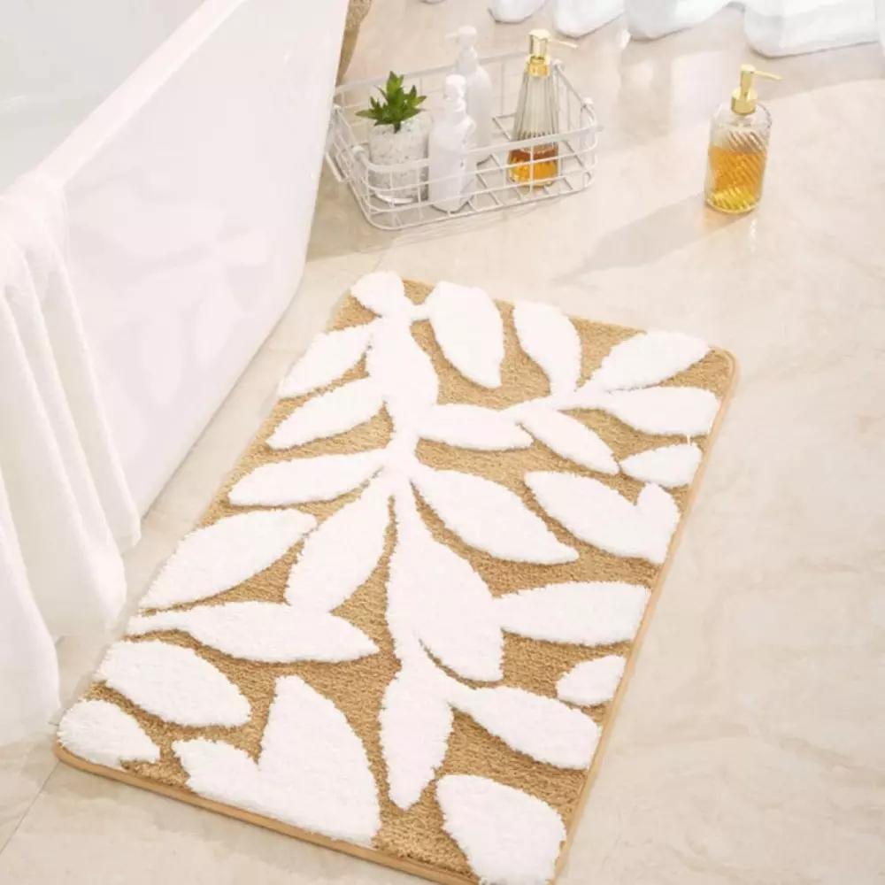 Коврик для ванной и душа коврик для ног в ванную комнату,микрофибра,атискользящий 40х60 см,жёлтый с листьями