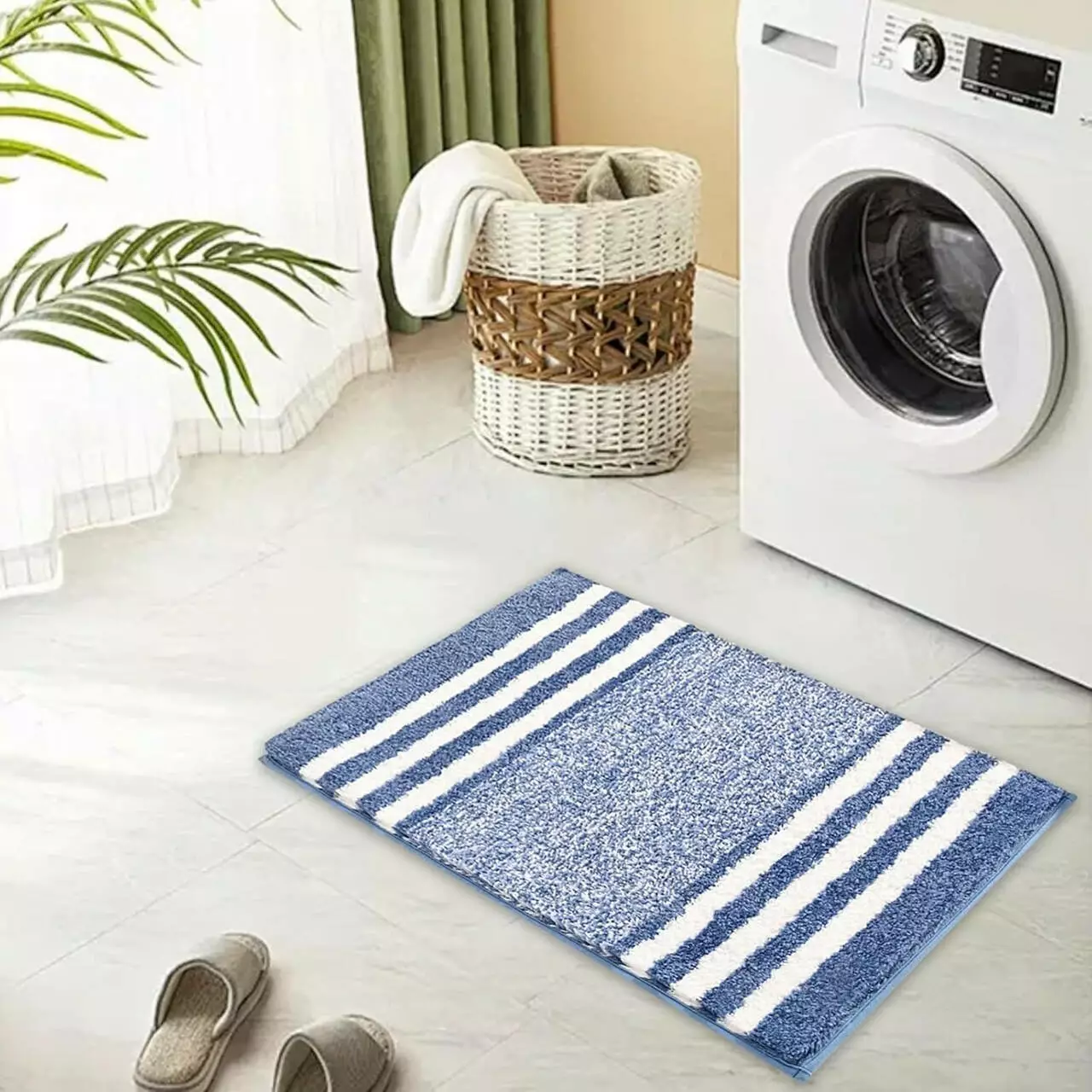 мокрій плитці. Дизайн — синій колір з білими смужками — освіжить