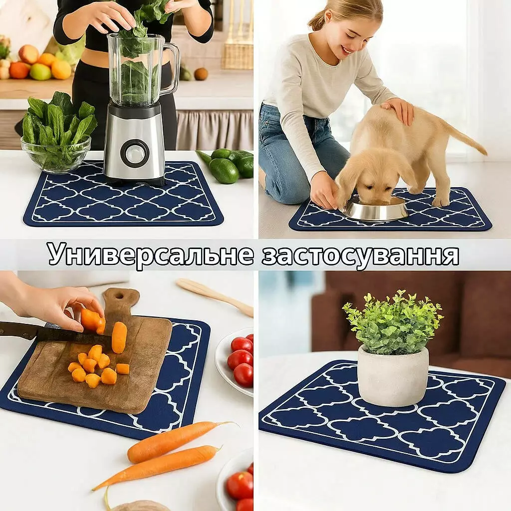 Коврик кухонный на столешницу для посуды, бытовых приборов,резиновый, влагопоглащающий,защитный,синий