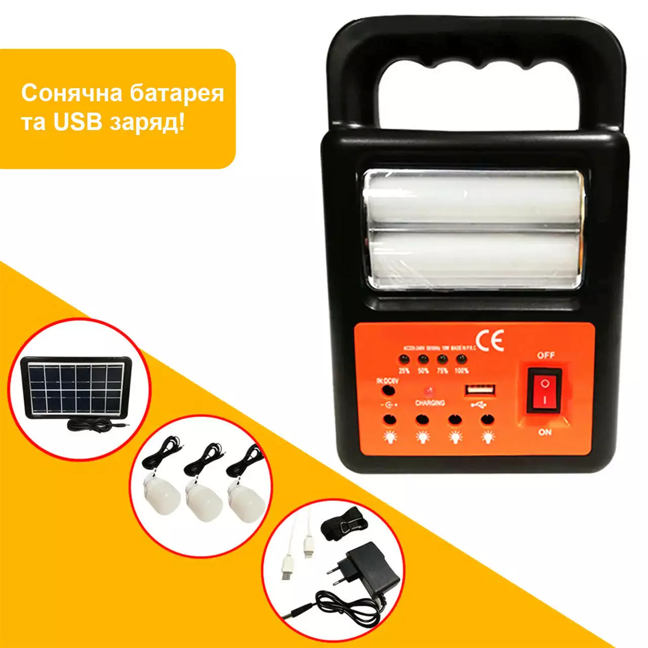панель, 3 світлодіодні лампочки, кабель для підзарядки мобільних