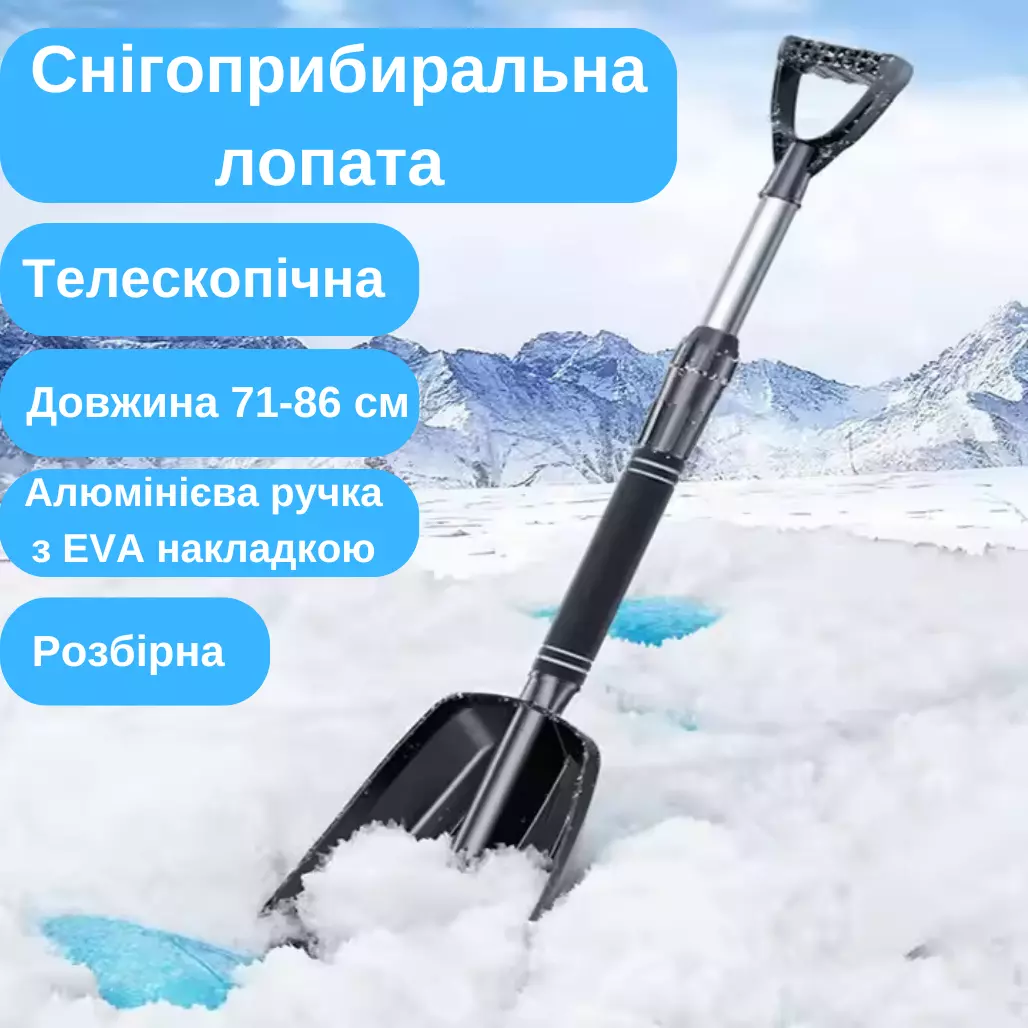 Лопата автомобільна для прибирання снігу алюмінієва розбірна.Лопата телескопічна в авто для прибирання снігу