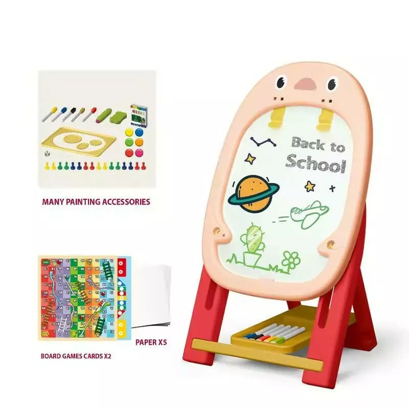Дошка має режим складання, що полегшує її зберігання і транспортування. У комплекті поставляються п'ять аркушів паперу і безліч аксесуарів для малювання, які допоможуть дітям розвивати свої навички. Стабільна конструкція на основі пластику гарантує довговічність, екологічність і безпеку використання.
