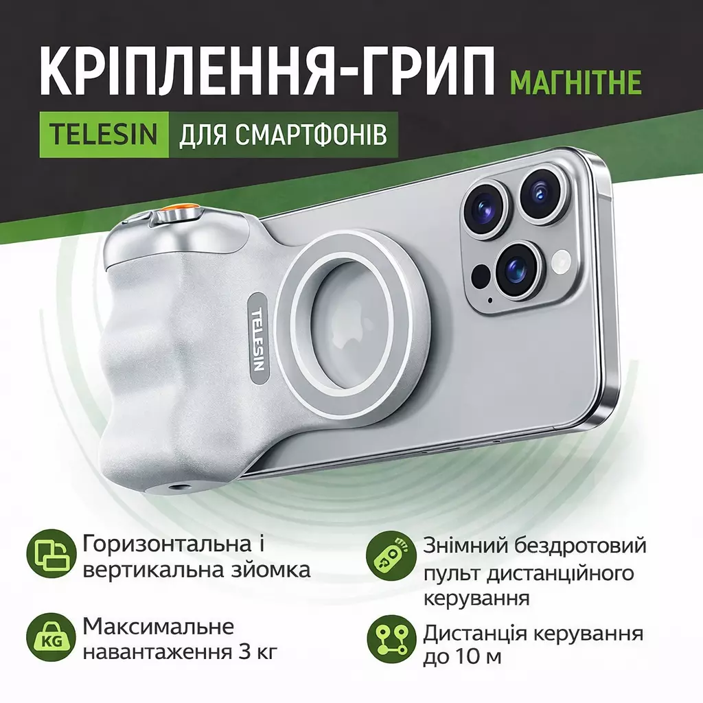 Магнітний тримач на телефон грип-кріплення рукоятка для фото і відео зйомки Android і iPhone з Bluetooth пультом