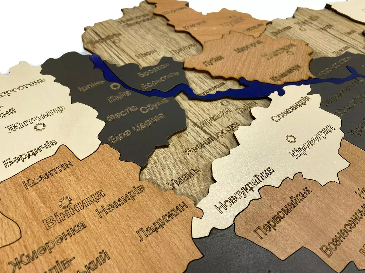 Виявіть свою любов до України та додайте унікальний елемент декору у ваше життя з нашою великою картою України з натурального дерева.