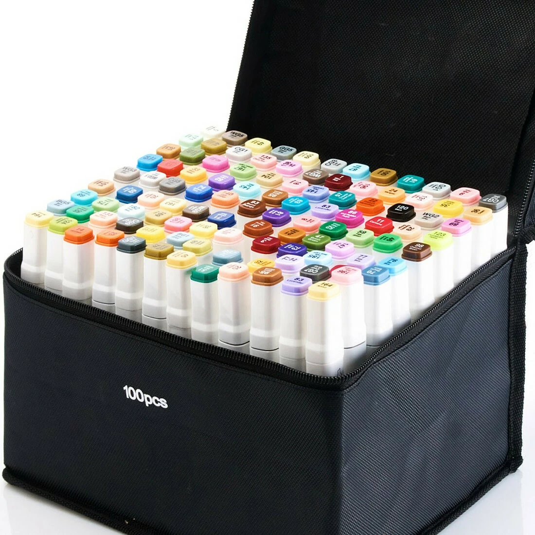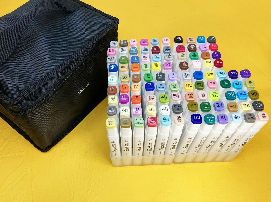 Маркери для скетчинга 100 шт TOUCH Multicolor, Набір двосторонніх маркерів для скетчинга на спиртовій основі