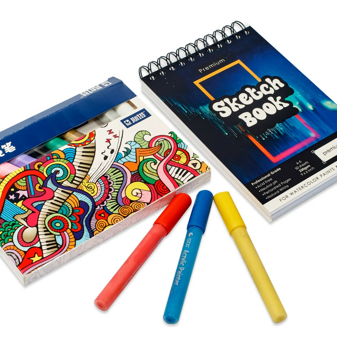 Маркери для скетчингу для початківців, Набір акрилових маркерів 12 кольорів + скетчбук на 50 аркушів А5