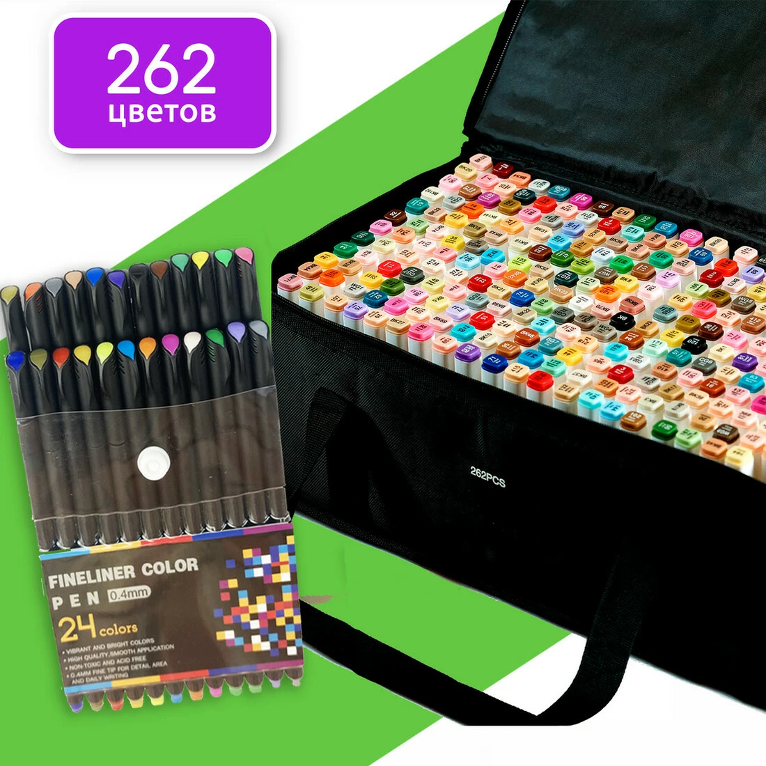 У наборі 262 маркерів різних кольорів.
