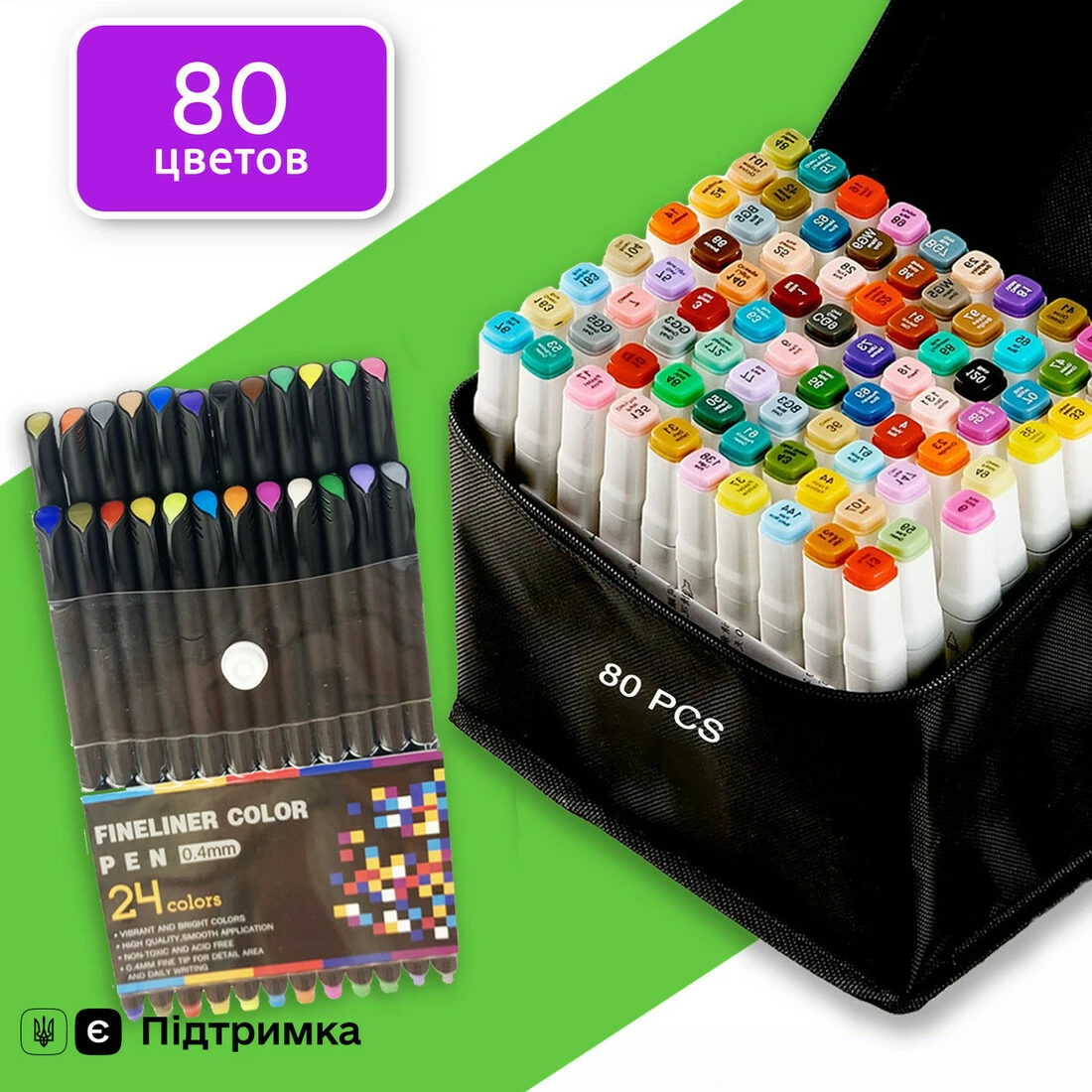 Маркери двосторонні Touch 80 кольорів і набір лайнерів 24 кольори