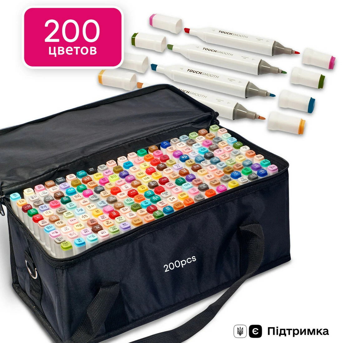 Маркери TOUCH 200 кольорів, самий великий набір маркерів для скетчинга на спиртовій основі для художників