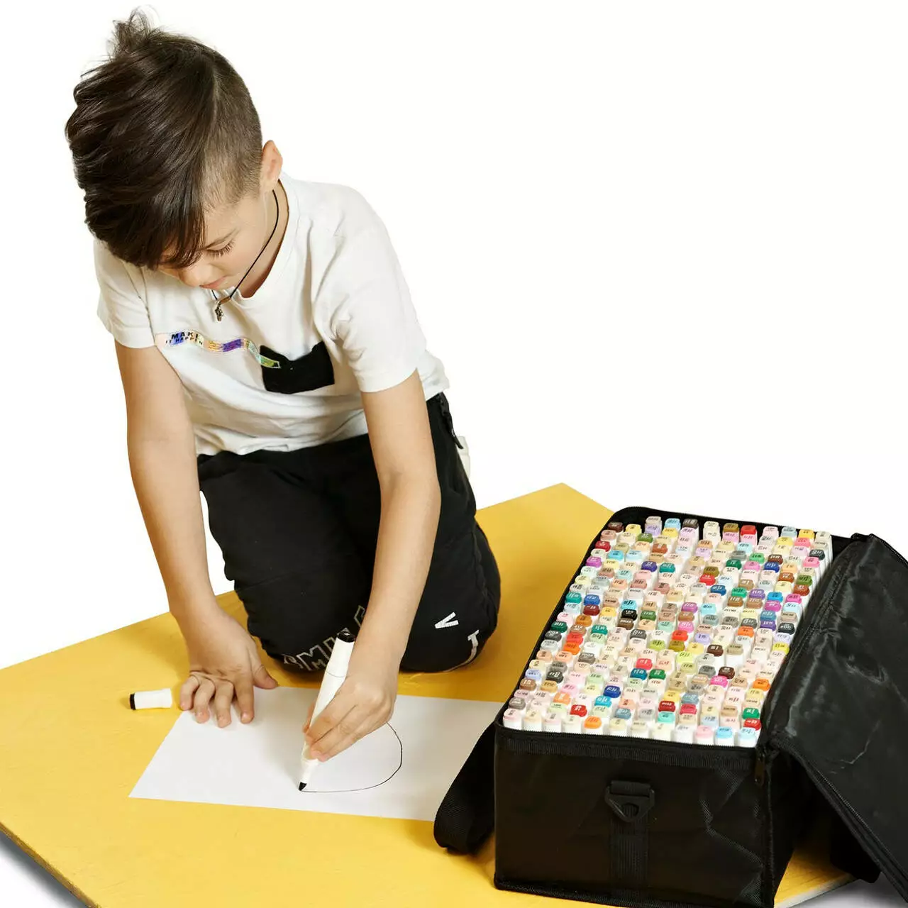 Маркер зручно лежить у руці завдяки гладкому пластиковому корпусу довжиною 16,8 см. Кожен колір має унікальний цифровий код, нанесений на ковпачок, що спрощує вибір потрібного відтінку. Спиртове чорнило швидко вбирається в папір і дає змогу легко змішувати кольори, створюючи плавні переходи між відтінками. Для роботи з маркерами рекомендується використовувати щільні аркуші або картон, щоб домогтися максимальної насиченості та чіткості ліній.