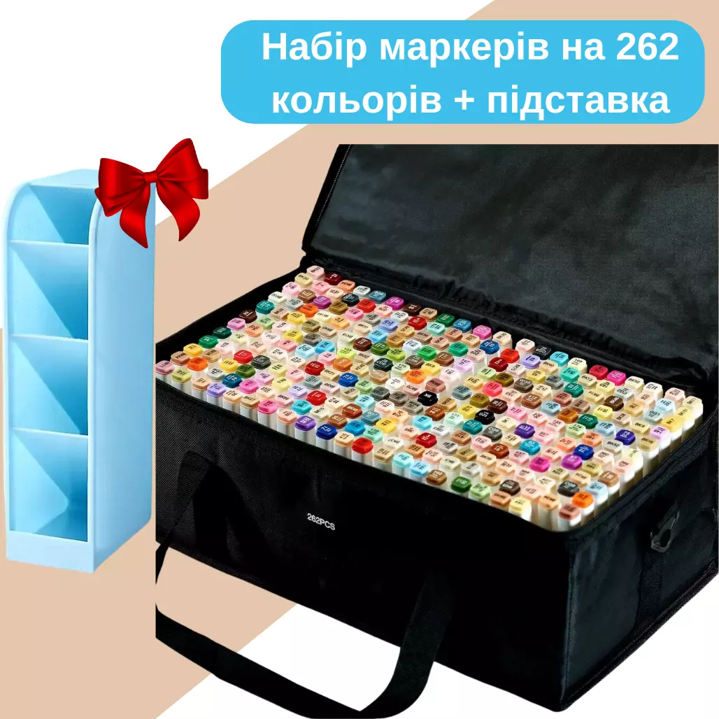 Маркери Touch Smooth набір 262 шт для малювання спиртові, двосторонні + Блакитна підставка для маркерів