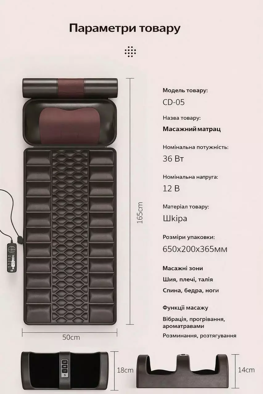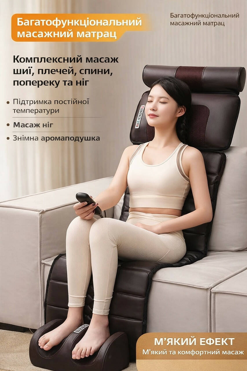 Масажний матрац призначений для впливу на кілька зон тіла: шия,