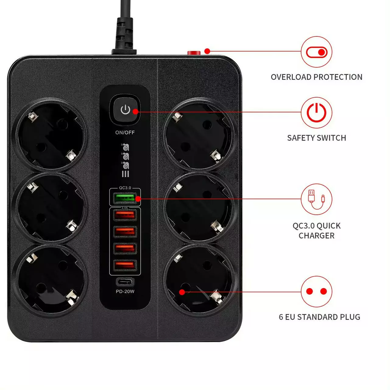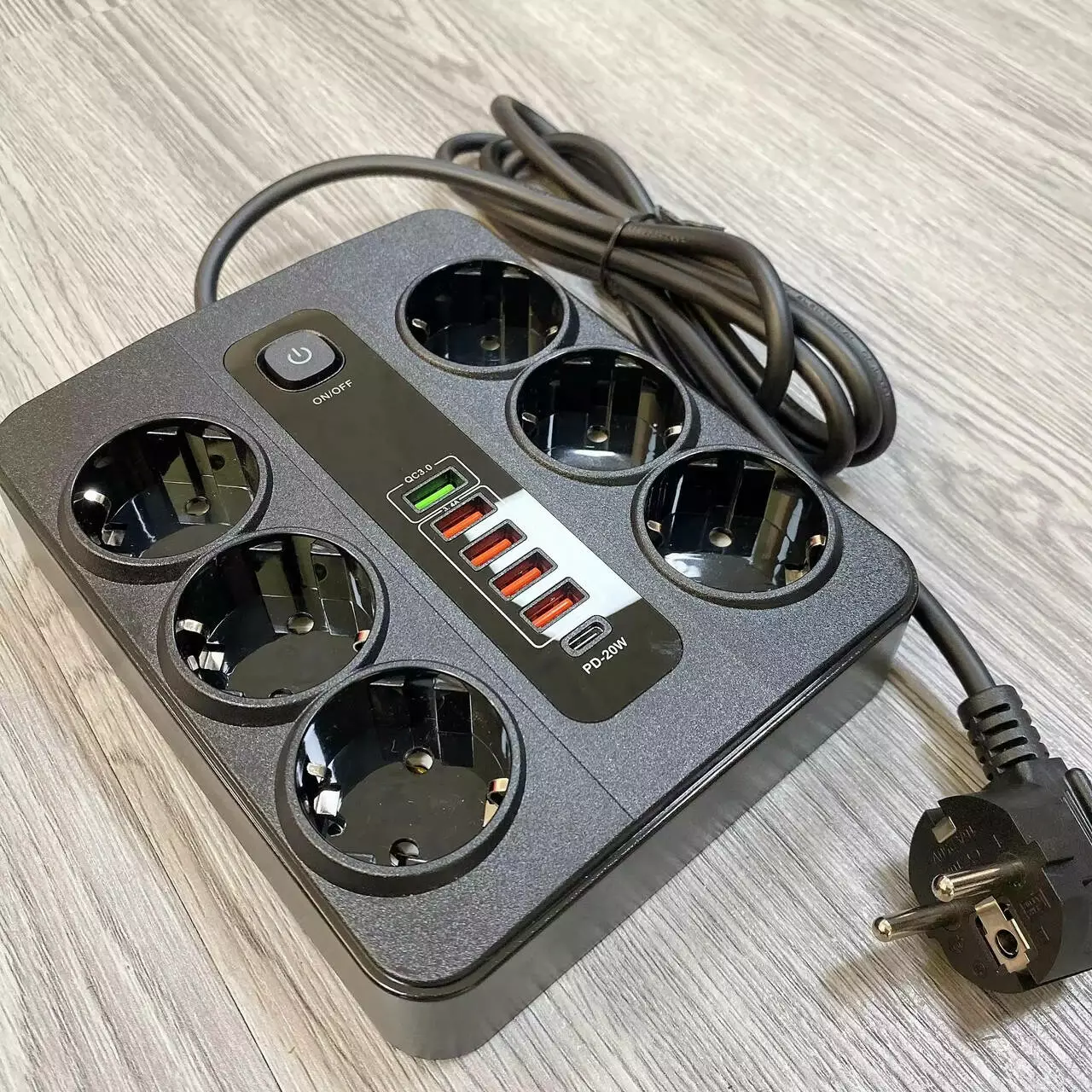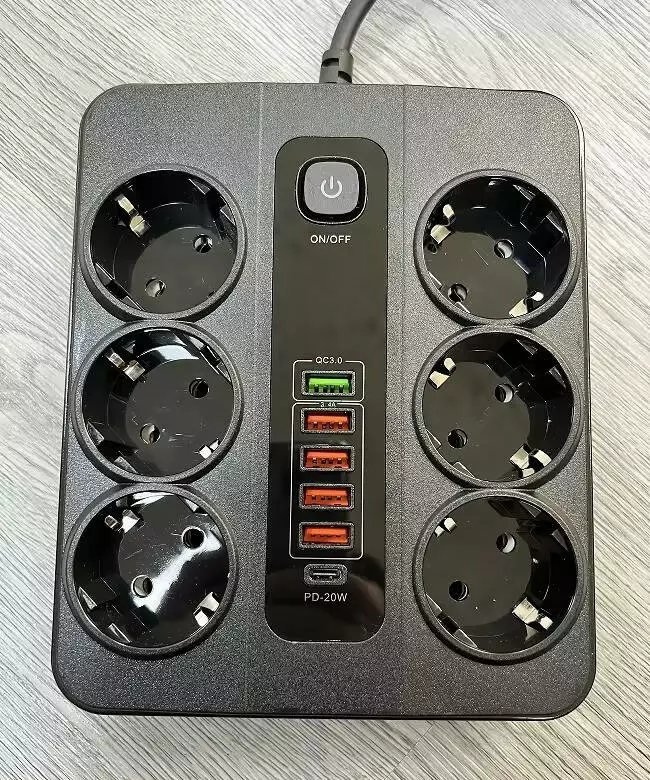 Фільтр оснащений одним портом USB PD потужністю 20W, портом QC3.0 і чотирма USB-портами з сумарним вихідним струмом 3.4A. Це дає змогу ефективно заряджати кілька сучасних гаджетів одночасно. Порт USB PD забезпечує швидке заряджання для пристроїв, що його підтримують, а порт QC3.0 надає додаткову швидкість заряджання для інших гаджетів, як-от смартфони та планшети.