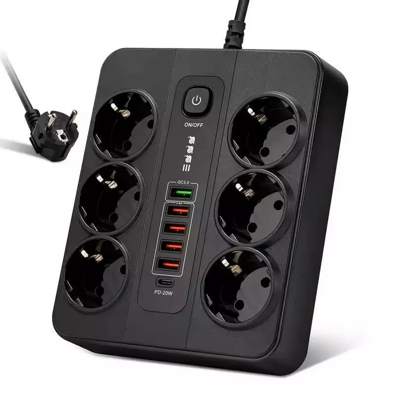 Мережевий фільтр BKL-11 1 PD20W + 1QC3.0 + 4 USB, 100-250V, 10А, 6 розеток, чорний