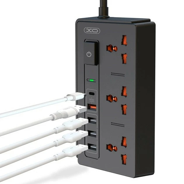 Купити мережевий підовжувач XO WL06 це дуже практичне рішення, адже маючи лише одну вільну розетку ви зможете підключити три пристрої звичайними мережевими штекерами та ще п'ять гаджетів через кабелі USB та Type-C.
