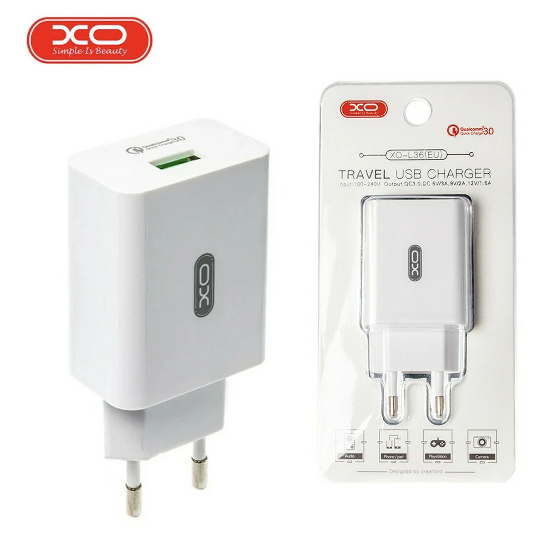 Мережевий зарядний пристрій XO L36 3A QC3.0 — це заряджання для