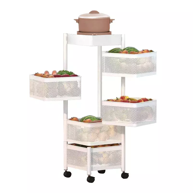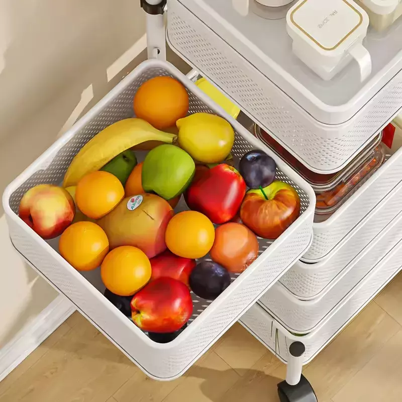 Завдяки п'яти глибоким полицям, стелаж забезпечує достатньо місця для зберігання посуду, продуктів або аксесуарів. Коліщатка з легким ходом забезпечують мобільність конструкції, даючи змогу легко переміщати її з однієї кімнати в іншу.