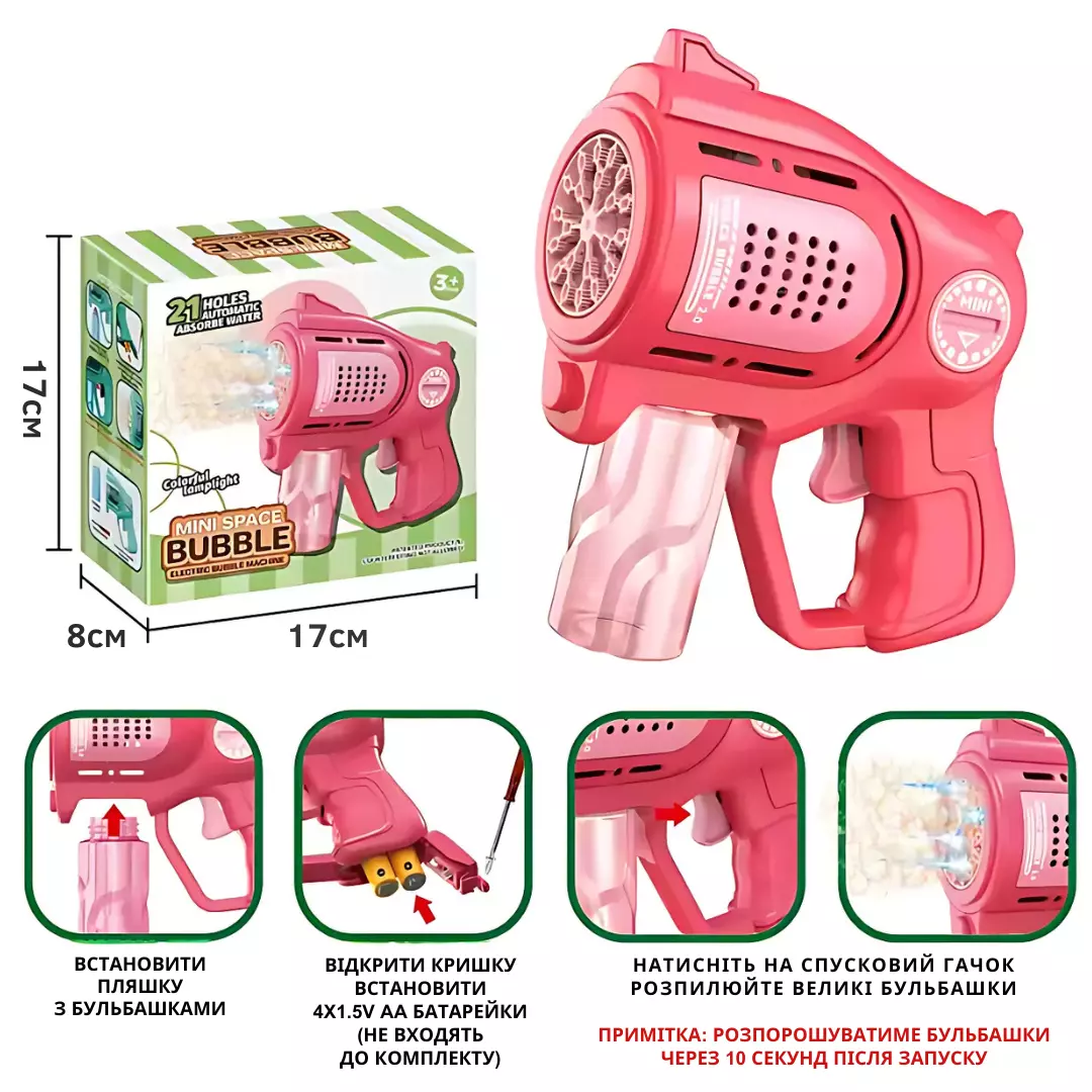 Мильні бульбашки для дітей, пістолет для мильних бульбашок з підсвічуванням, іграшковий генератор бульбашок, рожевий