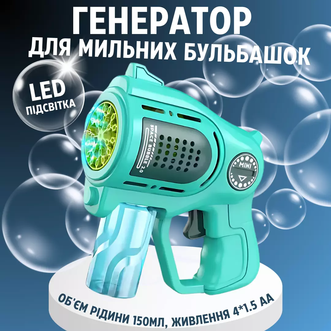 Мильні бульбашки для дітей, пістолет для мильних бульбашок з підсвічуванням, іграшковий генератор бульбашок, зелений