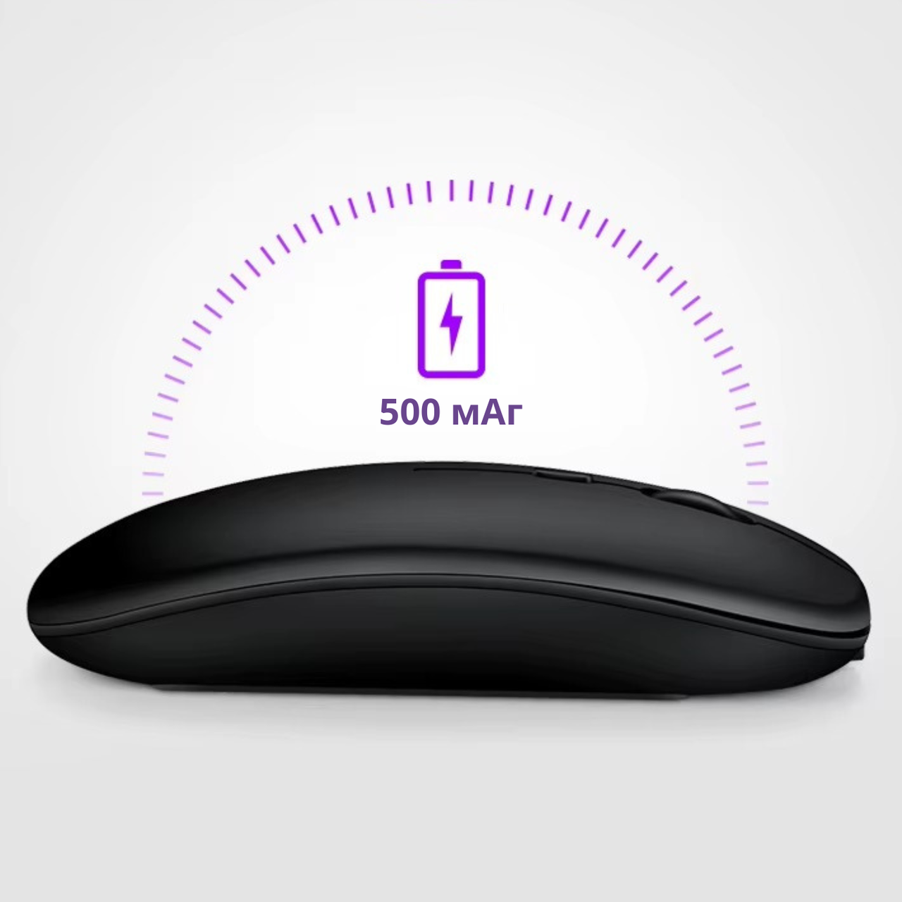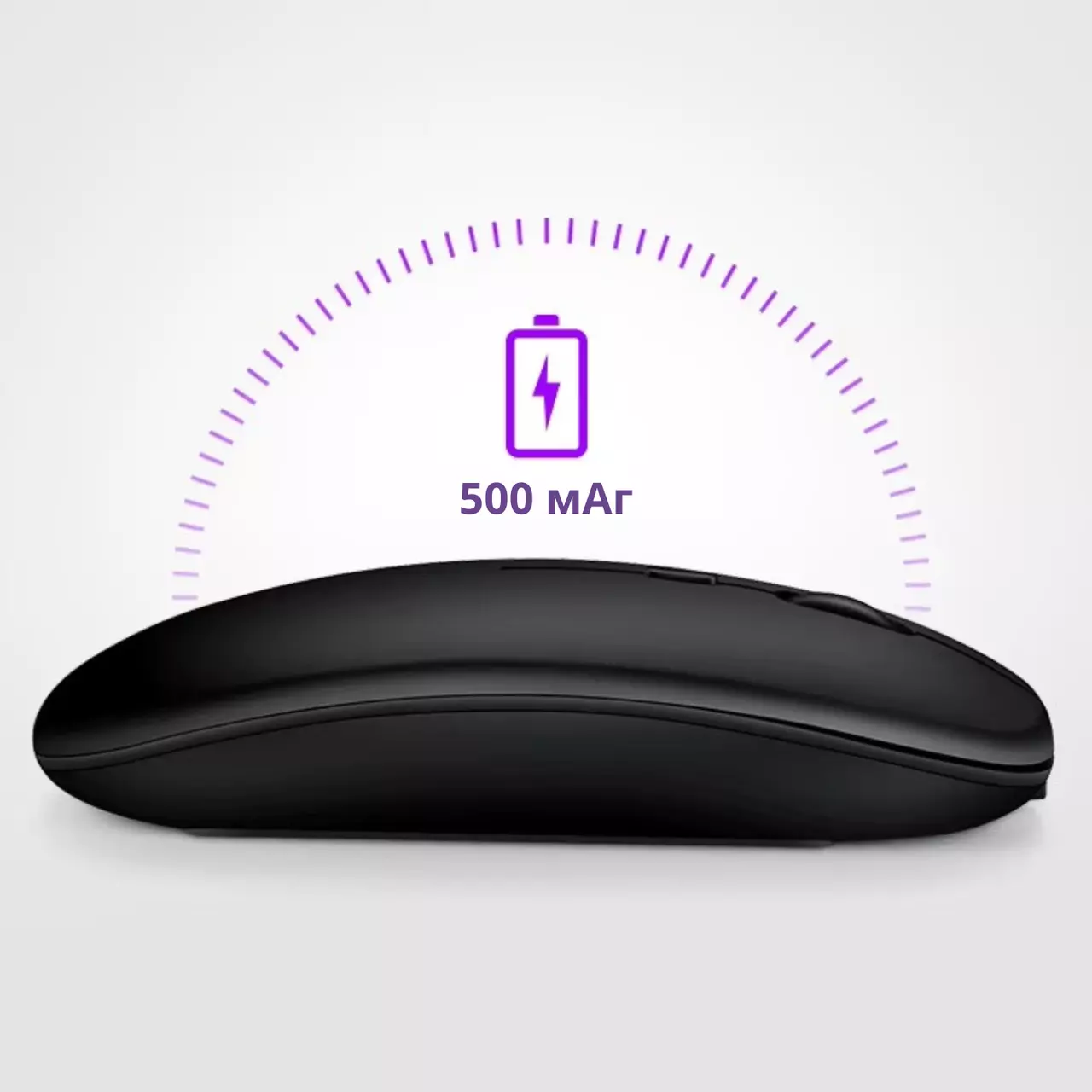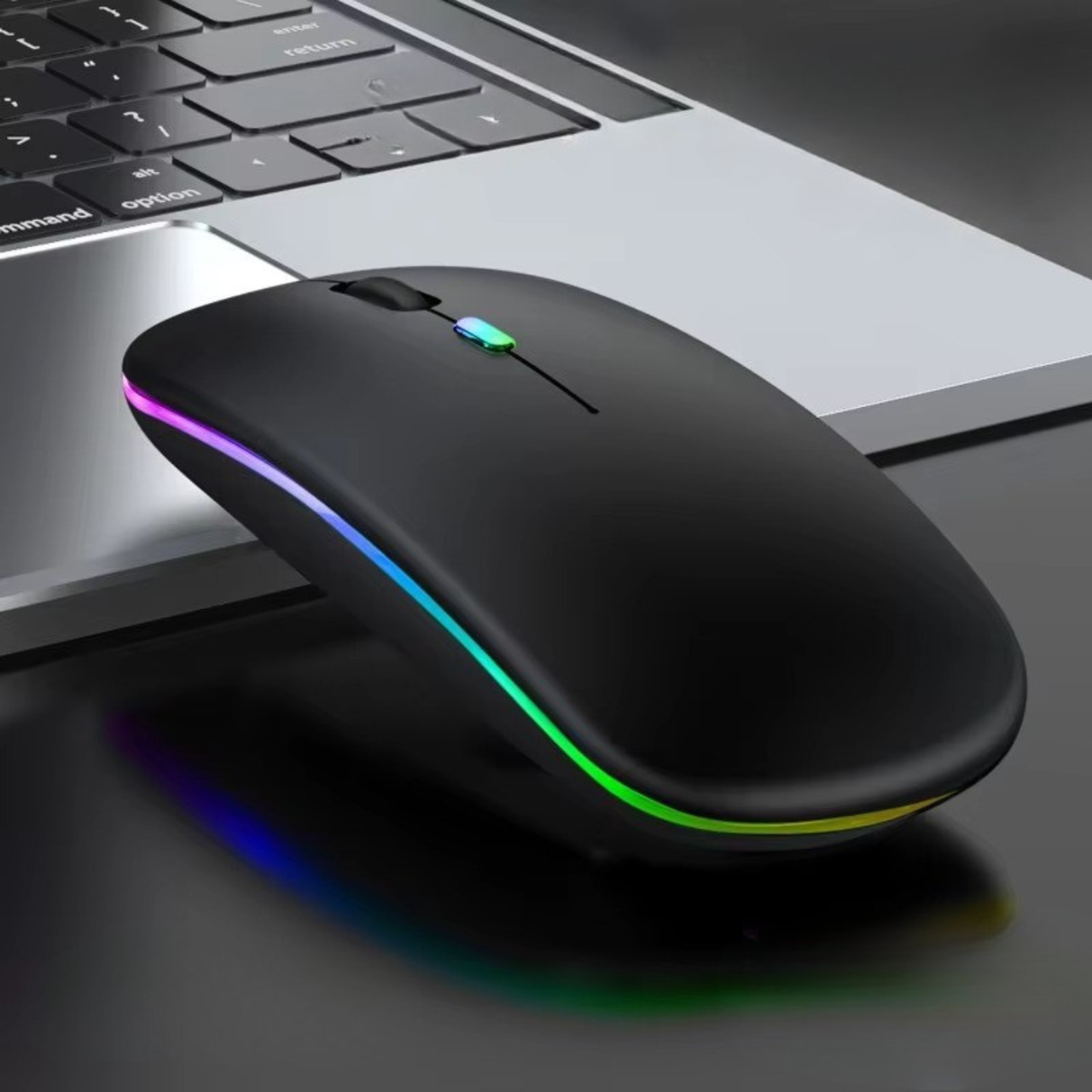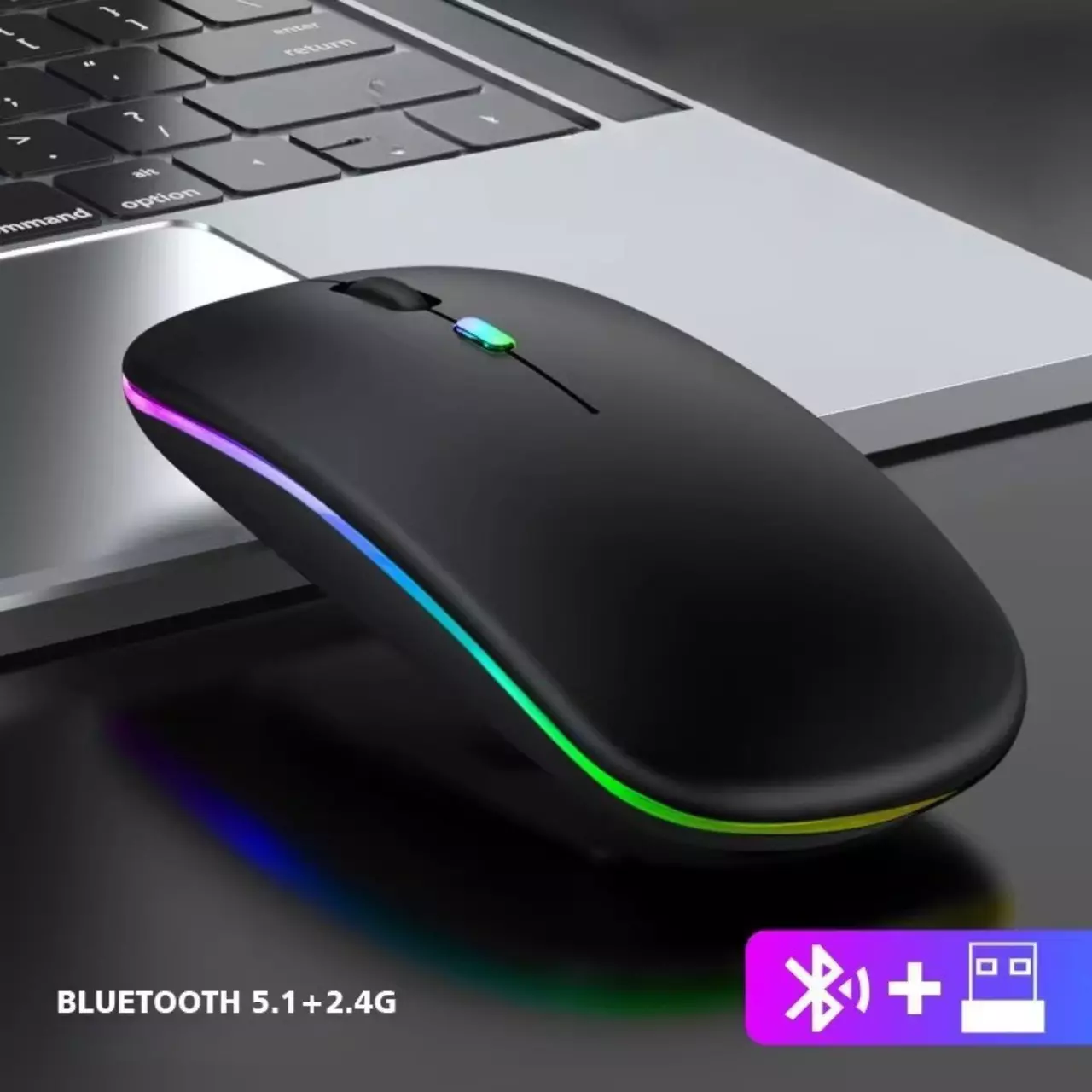 Миша бездротова комп'ютерна, безшумна, оптична з RGB-підсвічуванням 2.4G+Bluetooth DPI 800/1000/1200 чорна