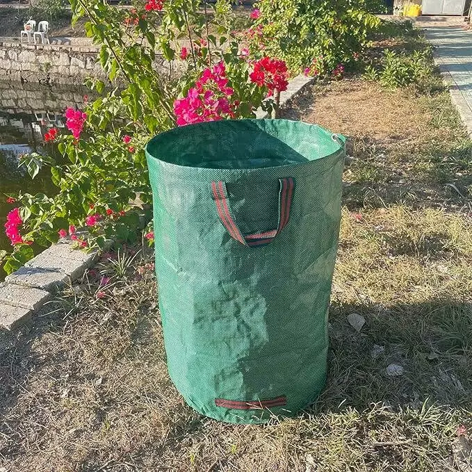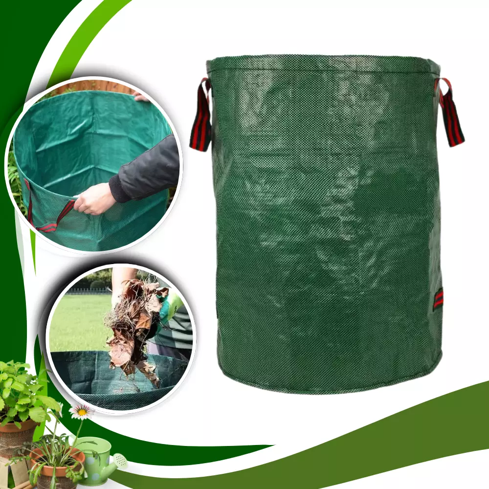 Мішок оснащений трьома ручками: дві — для перенесення, одна бокова — для зручного спорожнення. Ідеально підходить для збору листя, трави, бур’янів, гілок та іншого садового сміття. Універсальне та практичне рішення для сезонних робіт у саду.