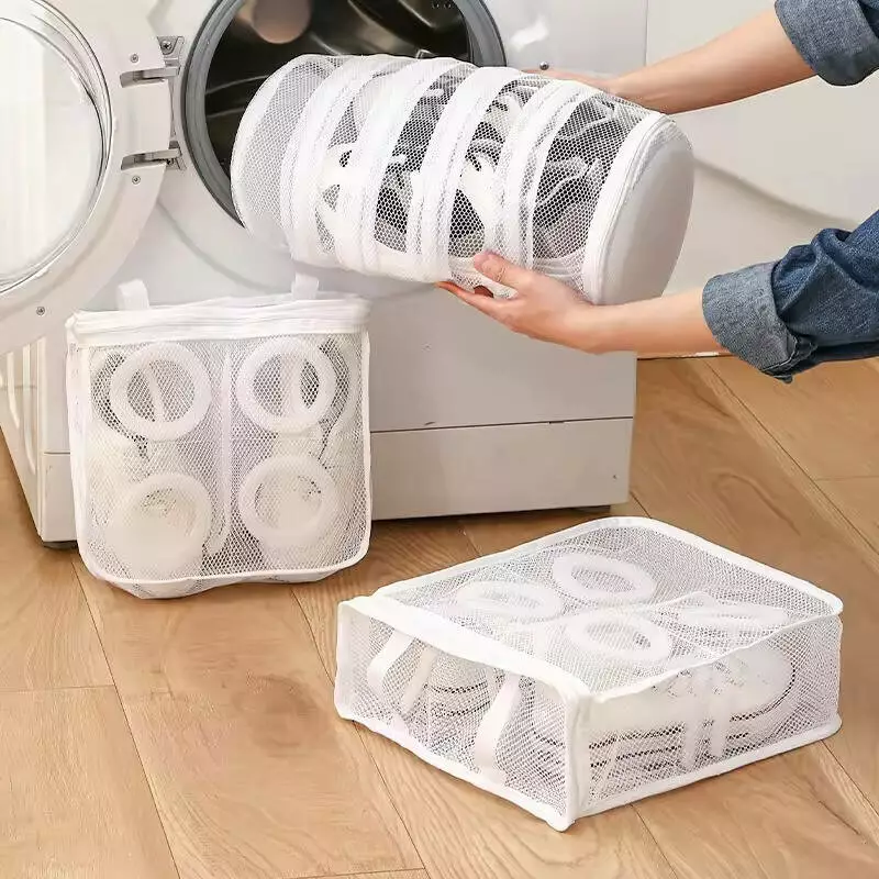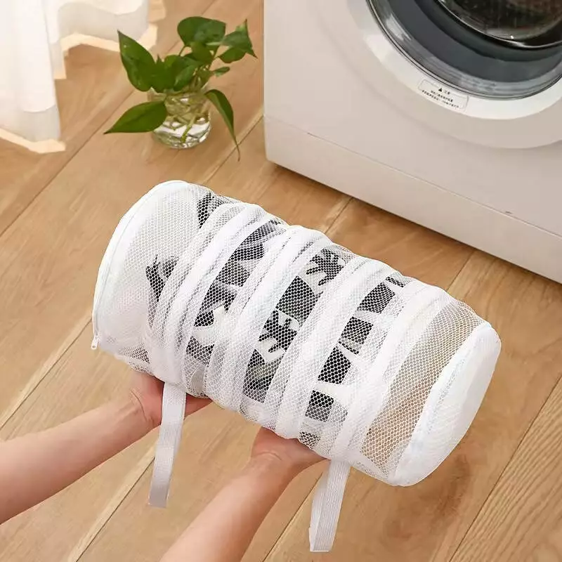 Мішок-циліндр для прання взуття в пральній машині являє собою ідеальне рішення для тих, хто хоче ефективно очищати взуття без ризику його пошкодження. Виготовлений із міцної сітчастої тканини, цей мішок забезпечує надійний захист від механічних пошкоджень під час прання. Завдяки своїй циліндричній формі та міцній блискавці, він легко та безпечно утримує взуття всередині під час роботи пральної машини.