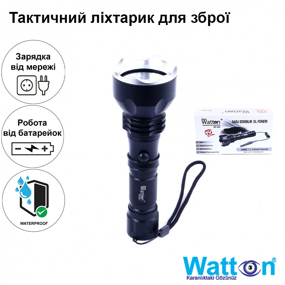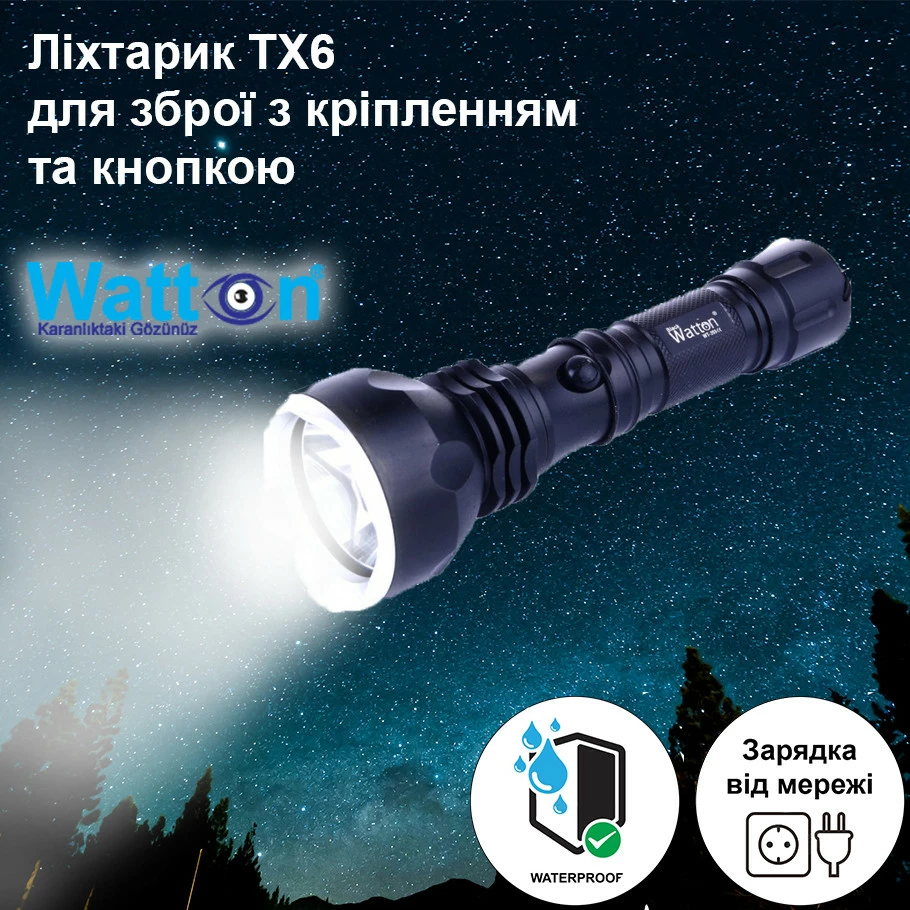 Мисливський акумуляторний світлодіодний ліхтарик для гвинтівки з кріпленням WATTON WT-253 600 Лм
