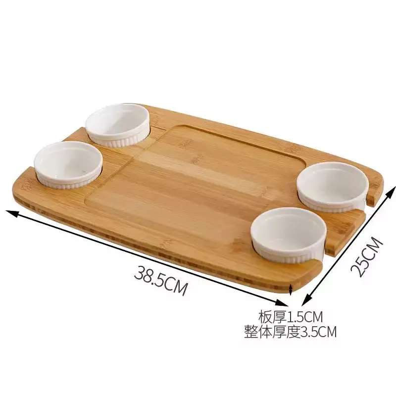 Комплектація: бамбукова дошка, 4 керамічні соусники, 4 керамічні соусники