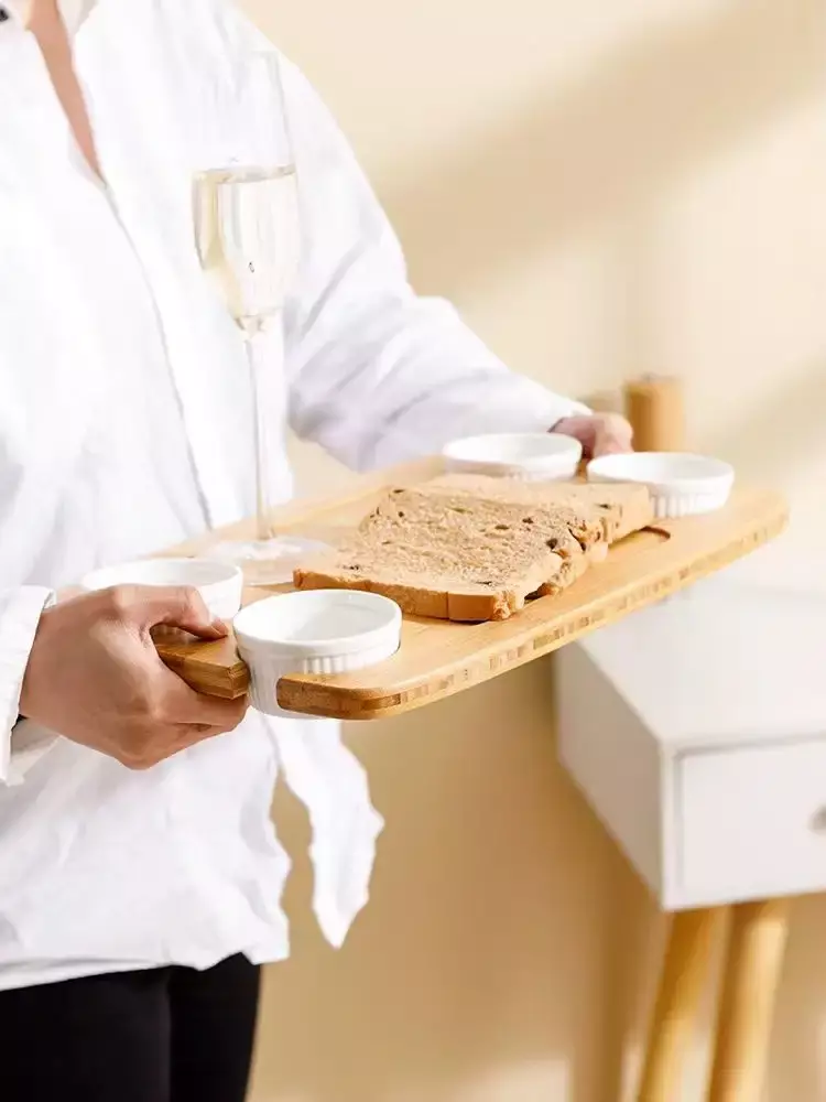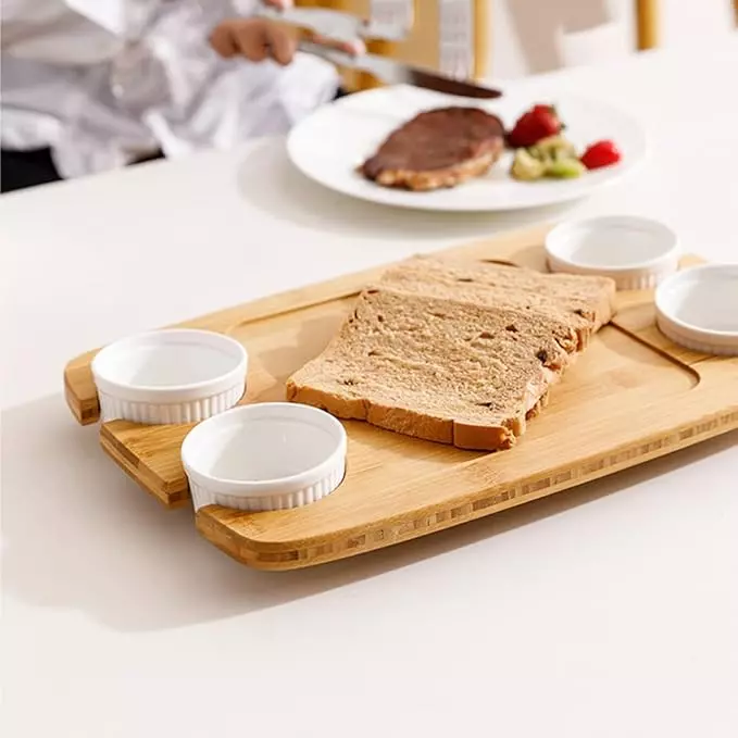 Бамбукова дошка для сервірування та подачі їжі з соусниками, дерев'яна менажниця для сніданків 38.5×25.4×3.5 см