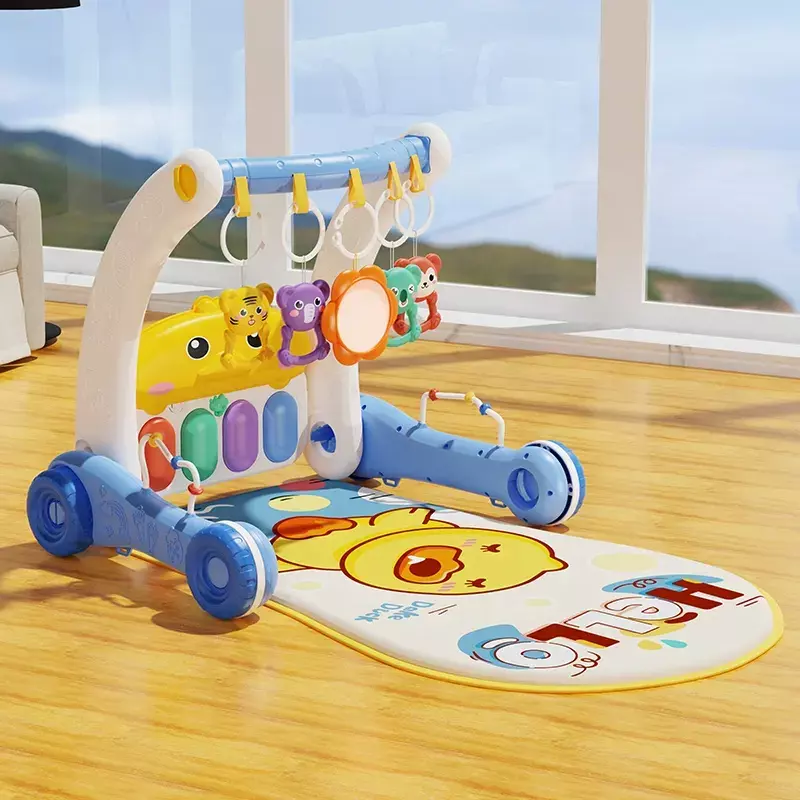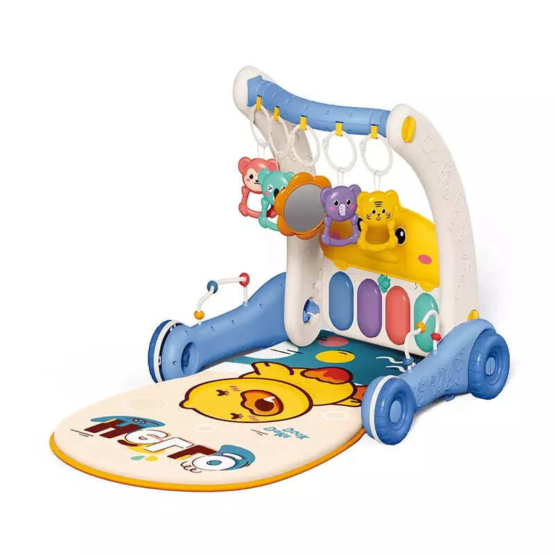 Музичний ігровий килимок-ходунки з піаніно, іграшками та дзеркальцем, 2в1, блакитний