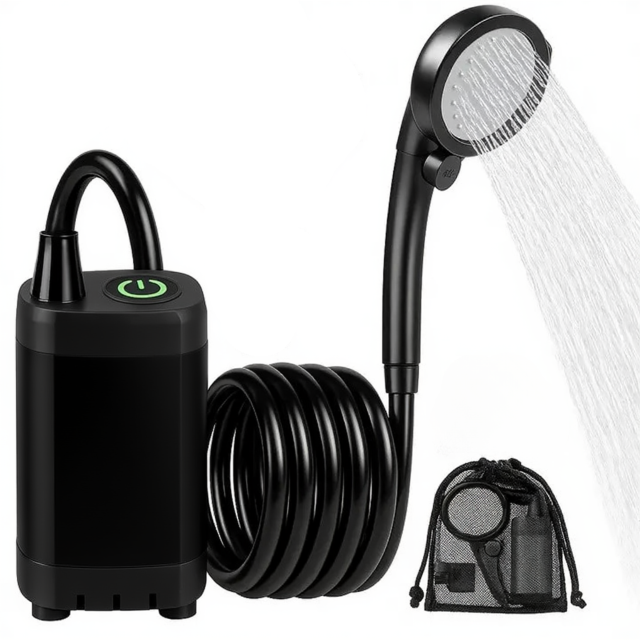 Портативний душ оснащений потужним акумулятором на 6000 мАг, що забезпечує стабільний напір води до 8–10 л/хв. Довгий шланг робить використання максимально комфортним, а корпус з ABS і PVC гарантує надійність і довговічність. Відмінно підходить для душу, миття рук, посуду, овочів або домашніх тварин у похідних умовах.