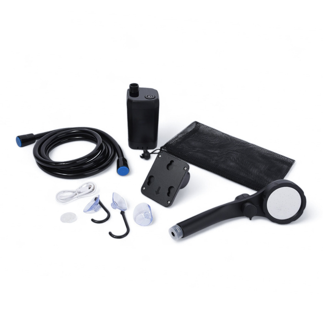 Портативний душ оснащений акумулятором на 6000 мАг, що забезпечує стабільний напір води до 8–10 л/хв. Довгий шланг робить використання максимально зручним, а корпус з ABS і PVC гарантує надійність і довговічність.