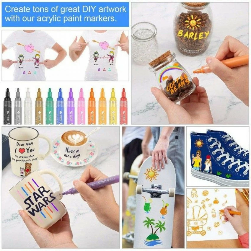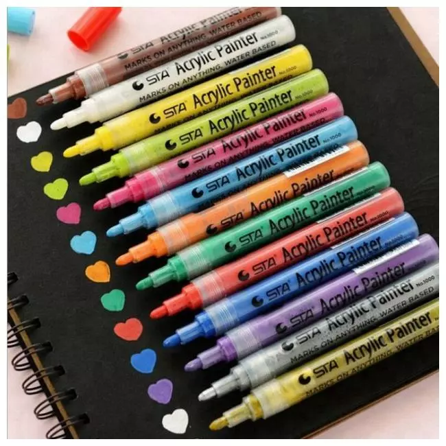 Набір акрилових маркери для малювання на різних поверхнях STA 12 кольорів 2мм, Художній набір