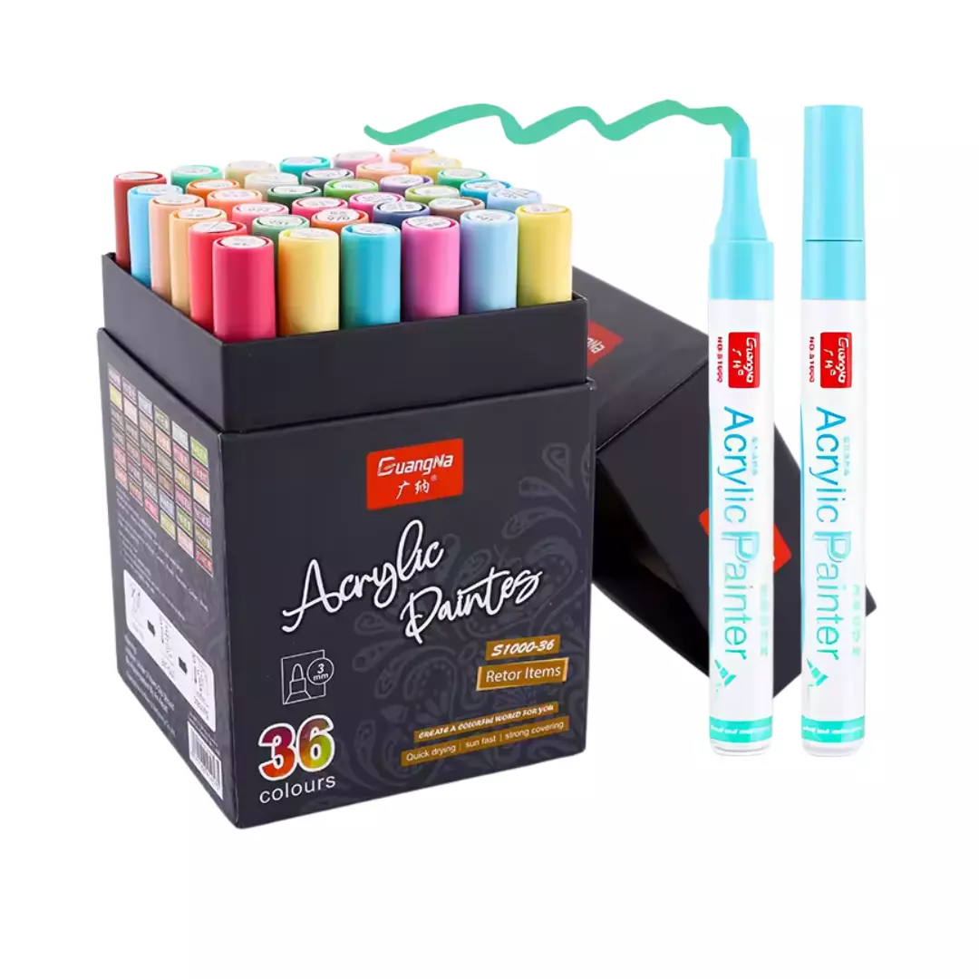 Набір акрилових маркерів GuangNa, 36 кольорів, для малювання по дереву, склу, тканині, розмальовок і творчості