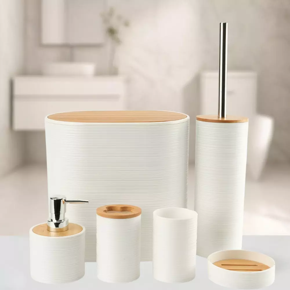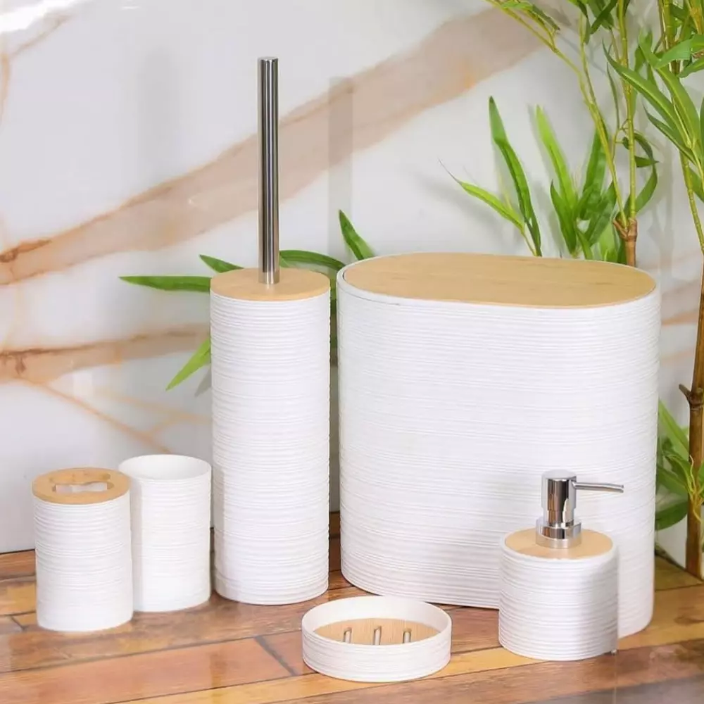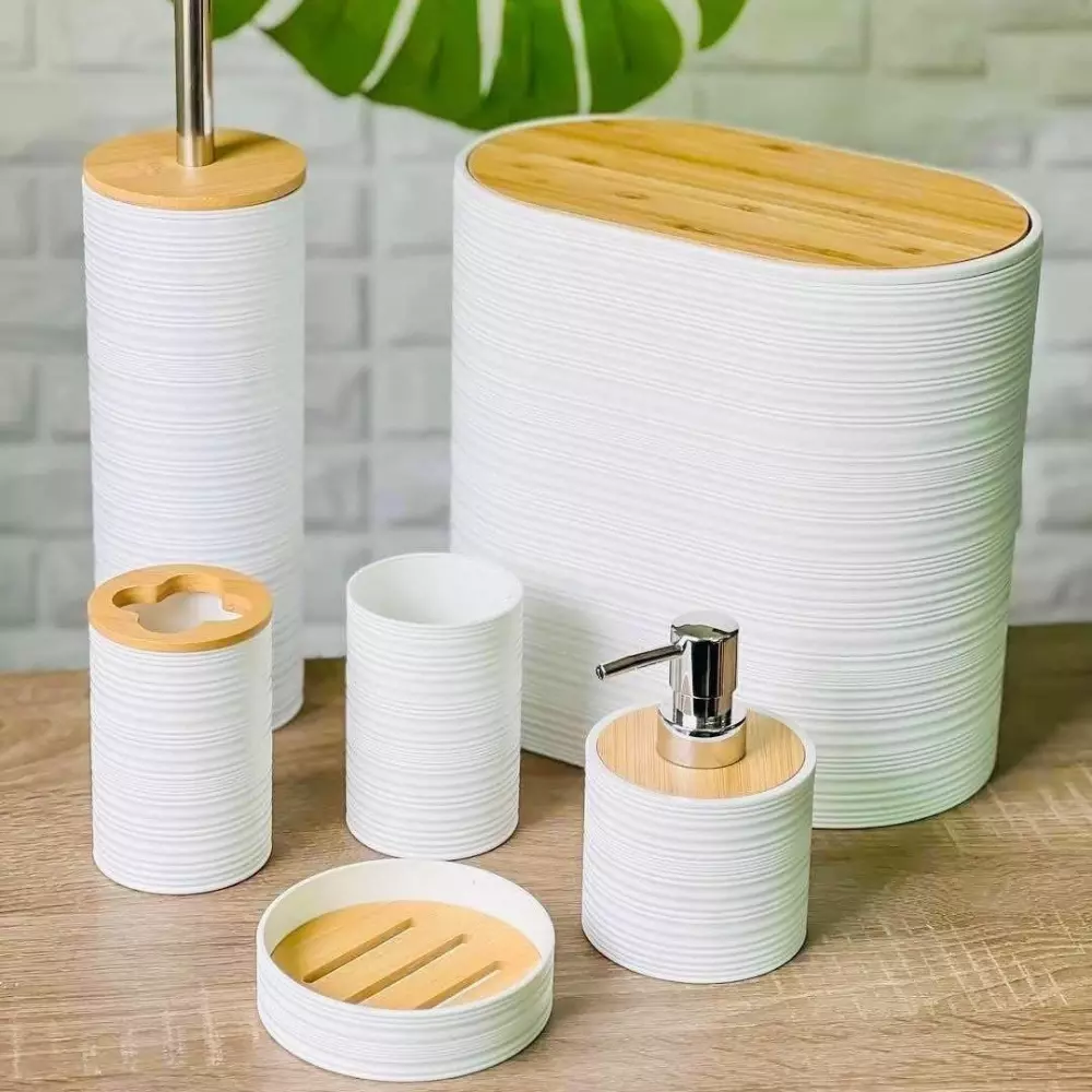 Набір аксесуарів 6в1 для ванної кімнати і душа, урна, дозатор для мила, мильниця,склянки, йоржик білий