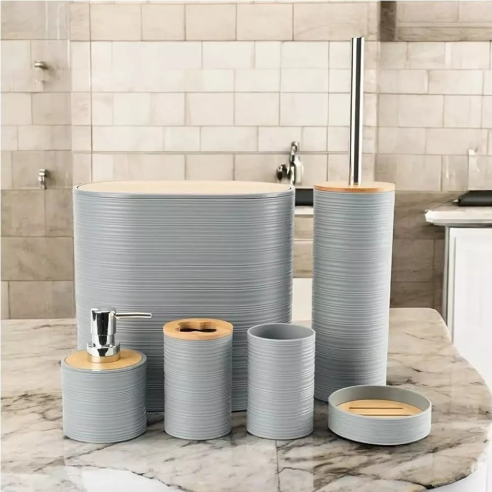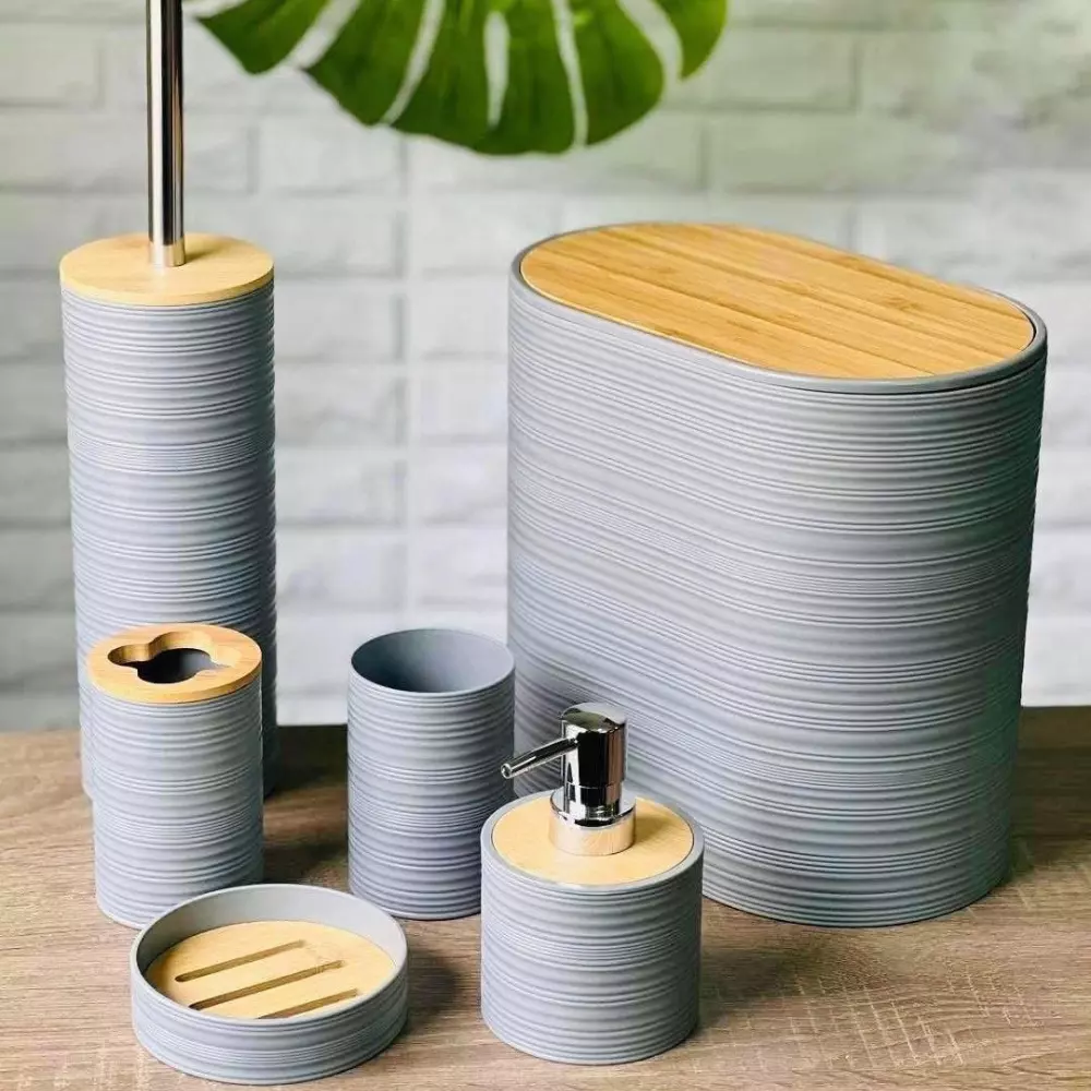 Набір аксесуарів 6в1 для ванної кімнати і душа, урна, дозатор для мила, мильниця,склянки, йоржик сірий