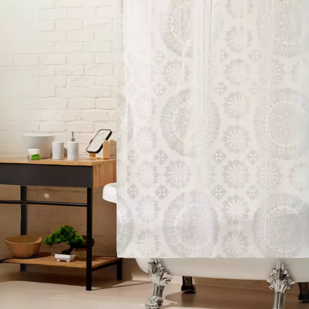Шторка з PEVA розміром 183 х 179 см, вирізняється підвищеною зносостійкістю і щільністю.